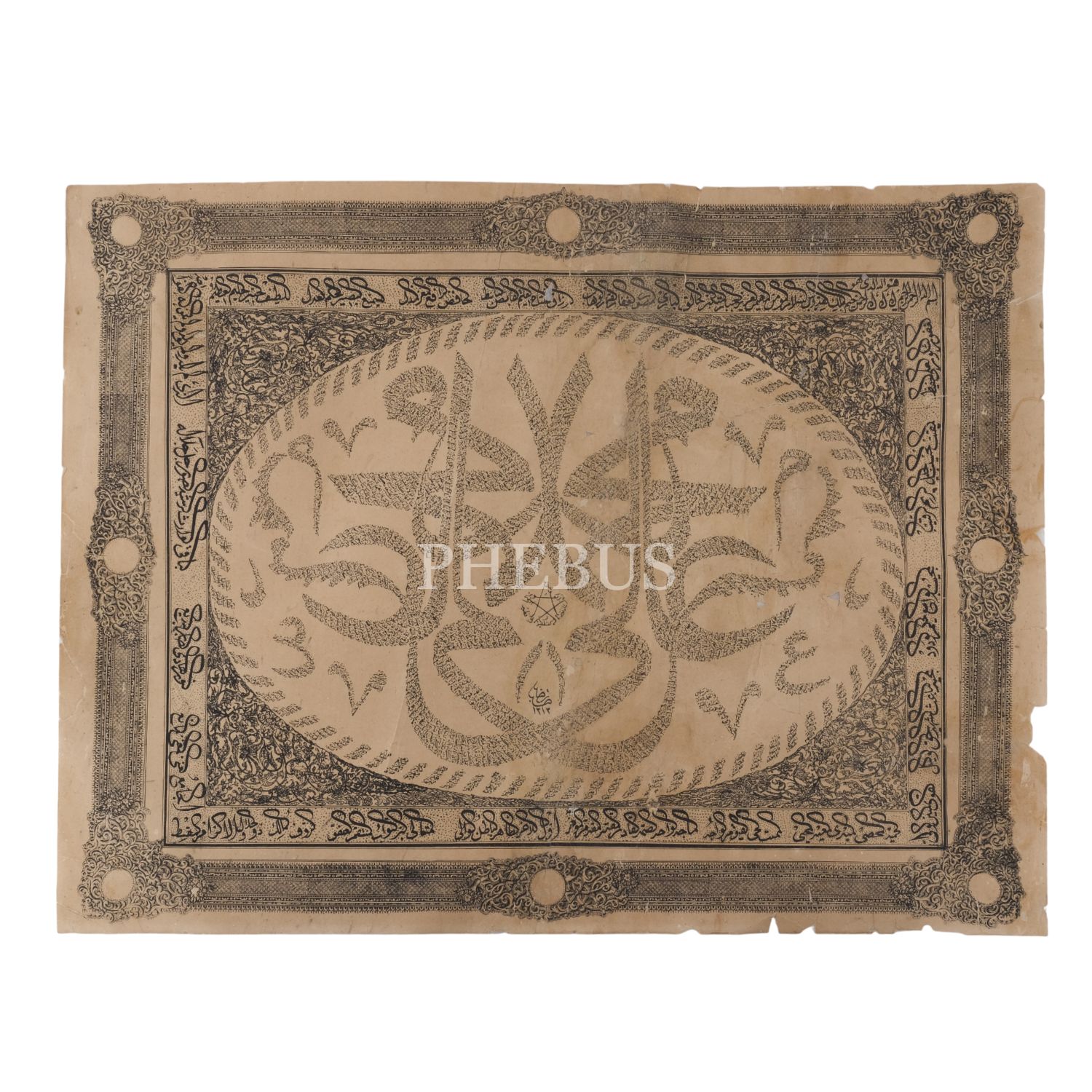 İncecik gubârî yazılı Osmanlı taş baskı müsenna yazı, 50x38 cm...