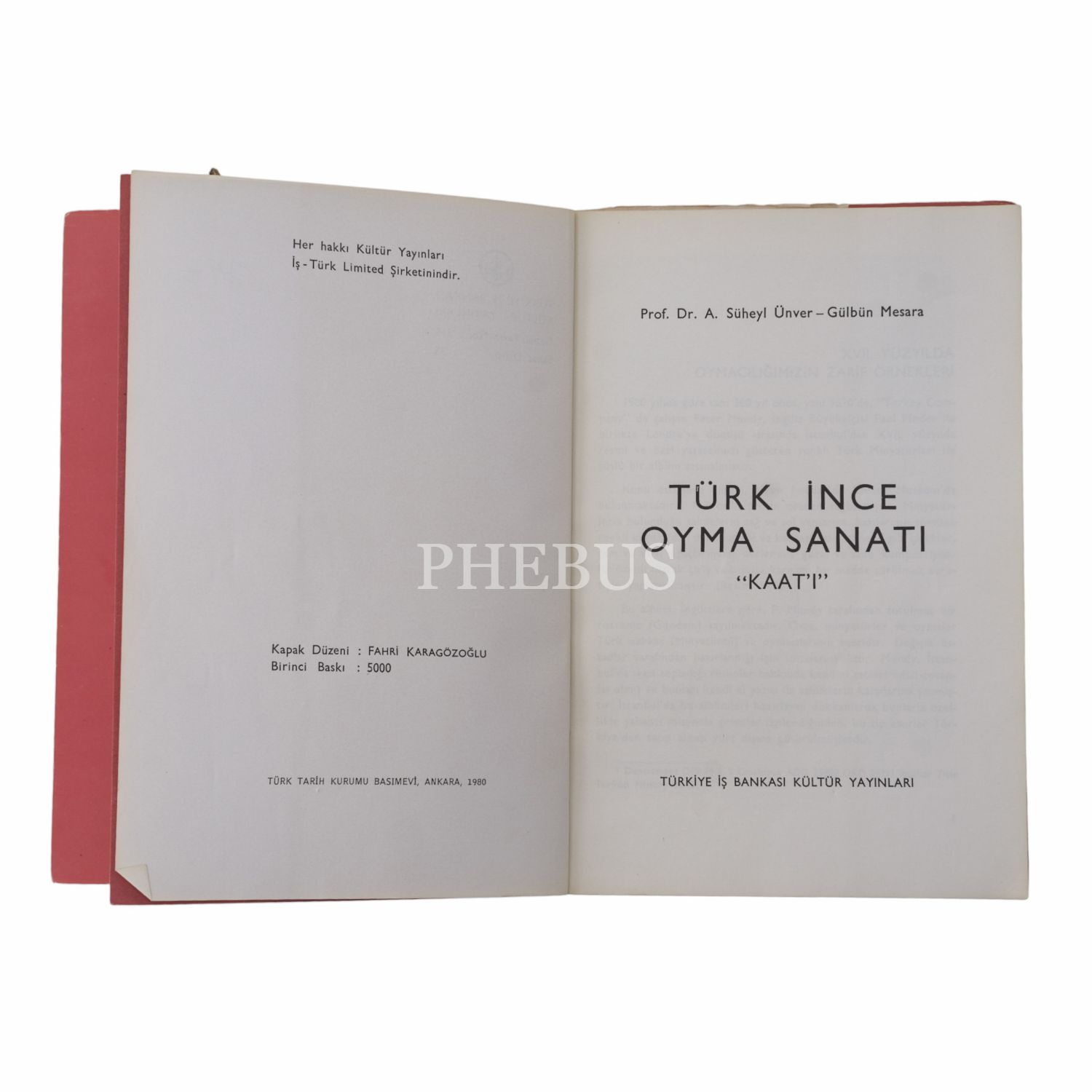 TÜRK İNCE OYMA SANATI "KAAT´I", Sühel Ünver - Gülbün Mesara, 1980, TTK Basımevi, 36 sayfa, 14x20 cm...