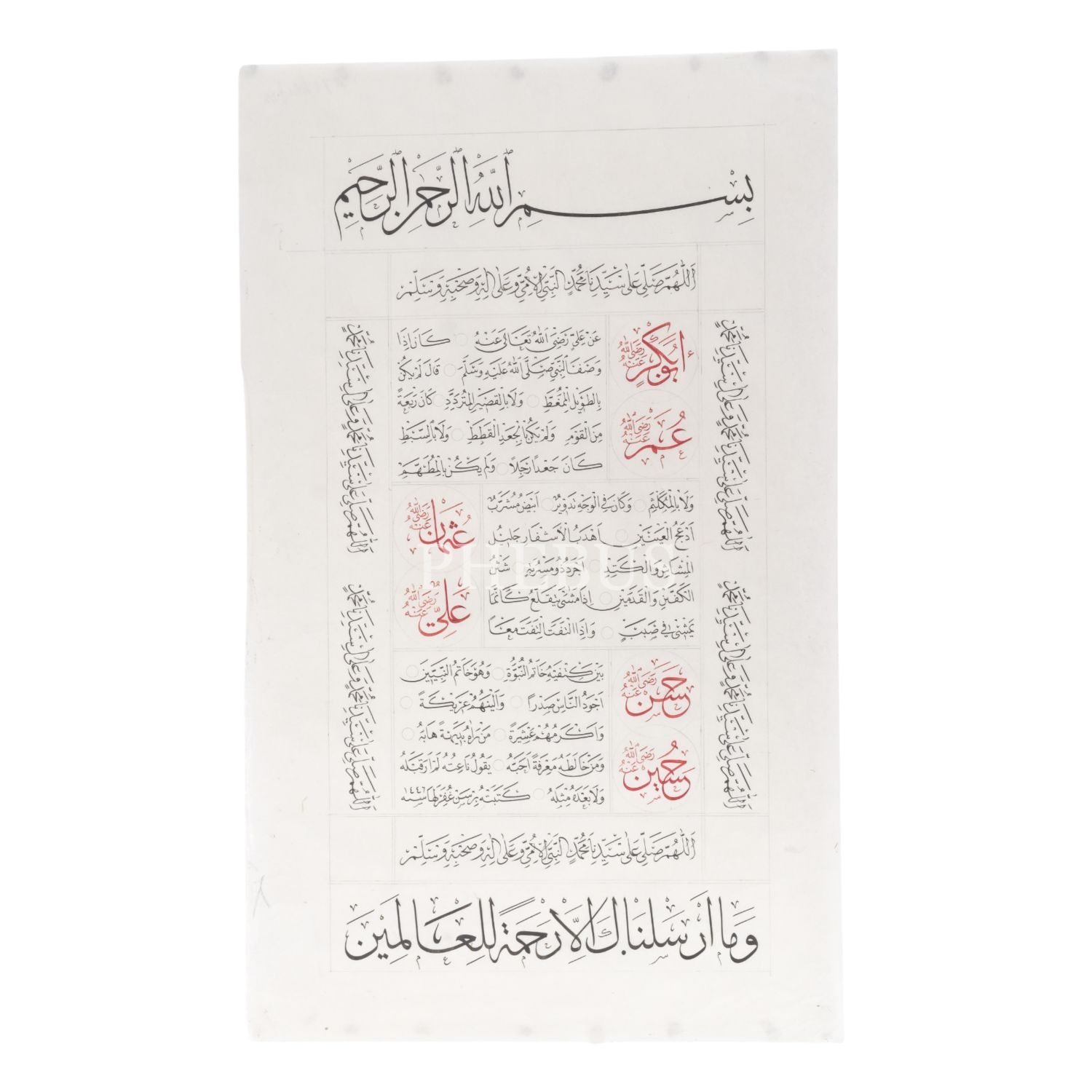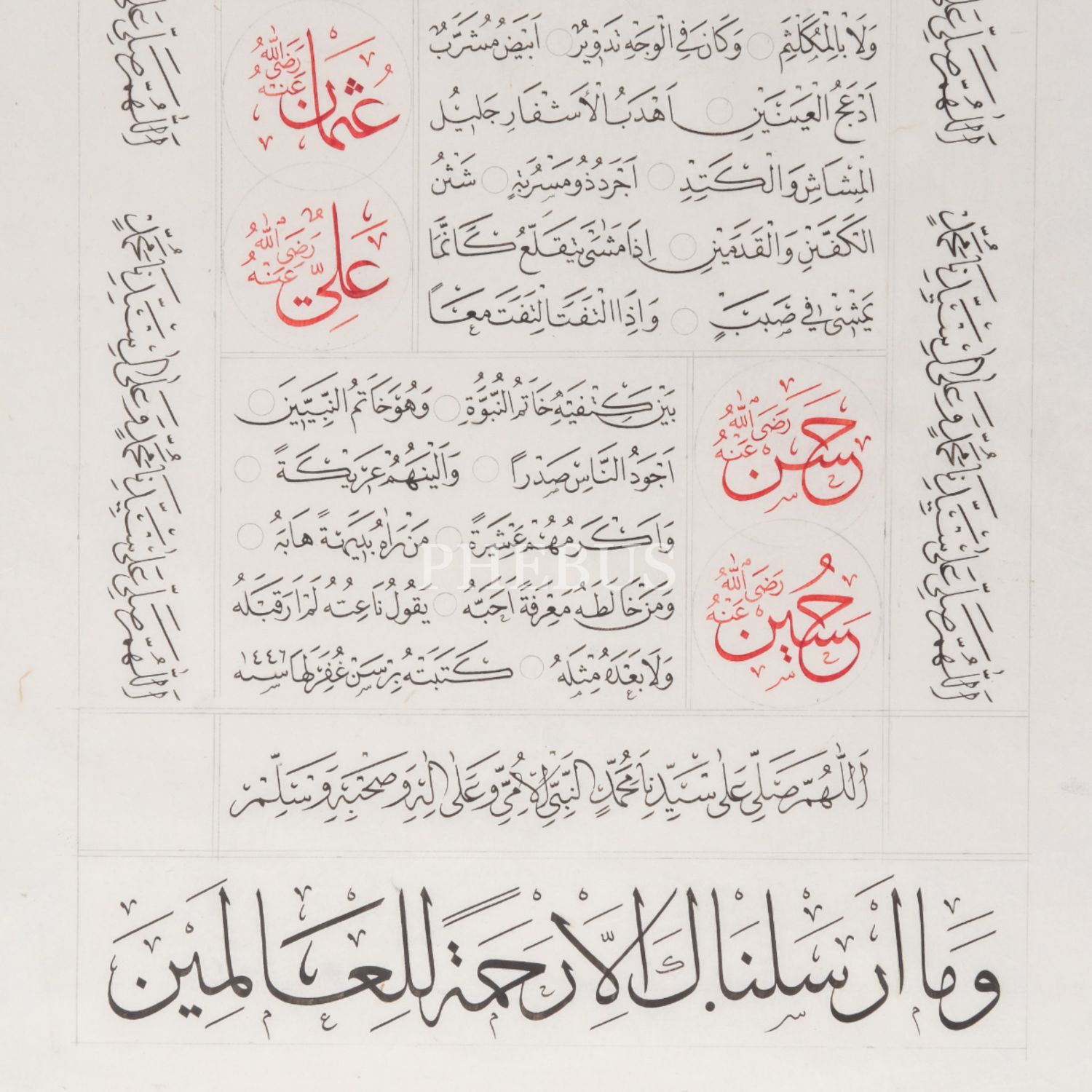 Birsen ketebeli sülüs-nesih hilye, 1446 tarihli, kâğıt ölçü: 33x53 cm...