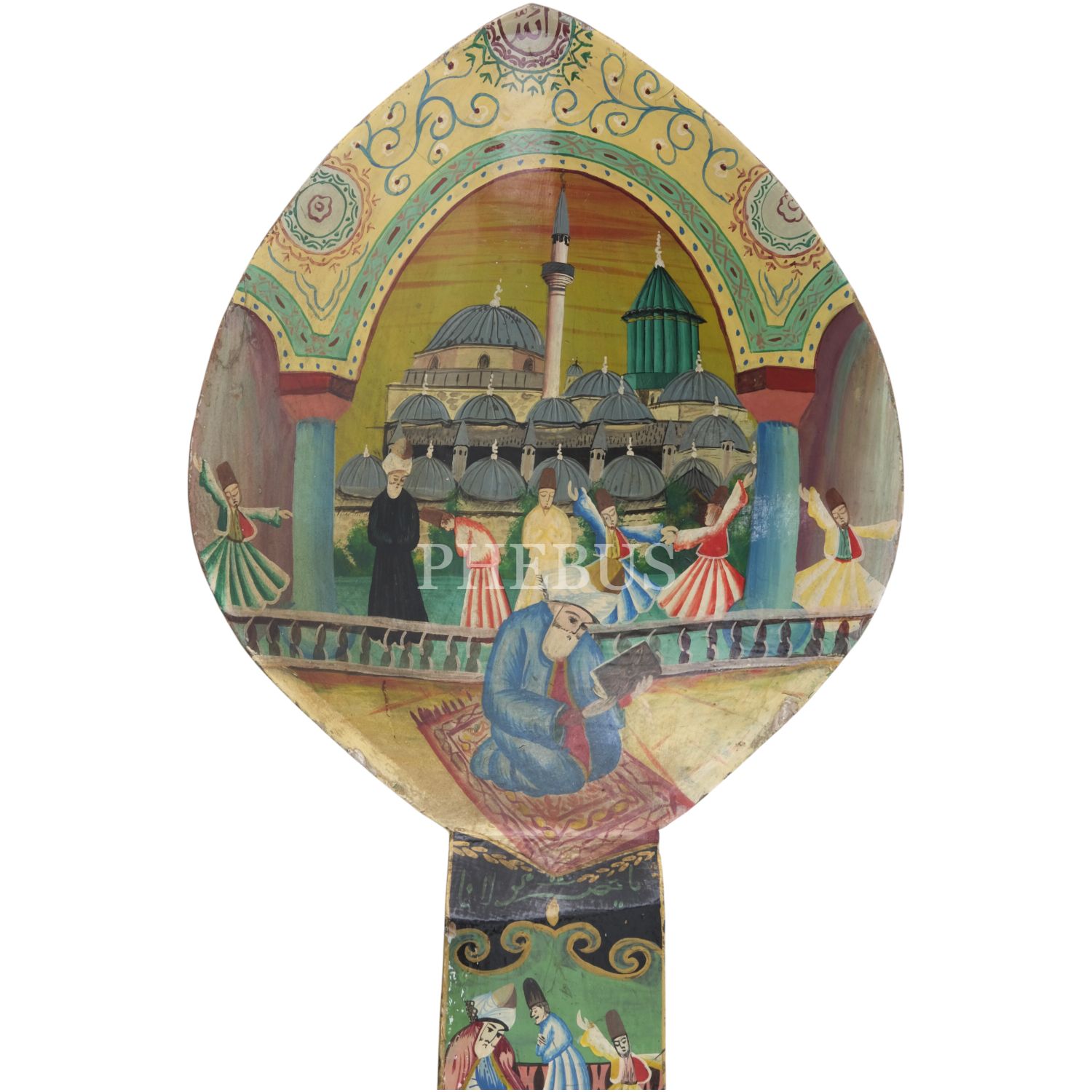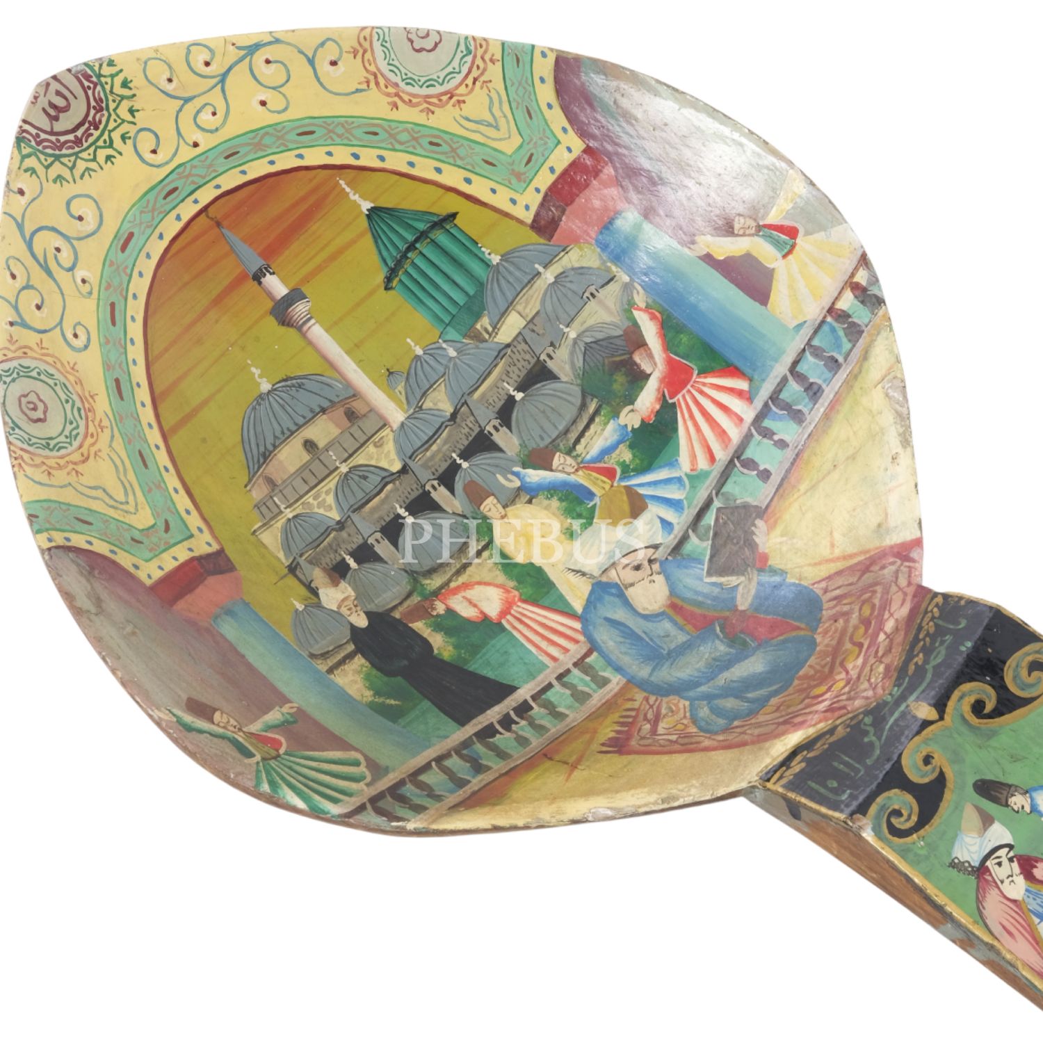Mevlâna ve Mevlevîlik resimleriyle süslü dev boy kaşık, 25x83 cm...