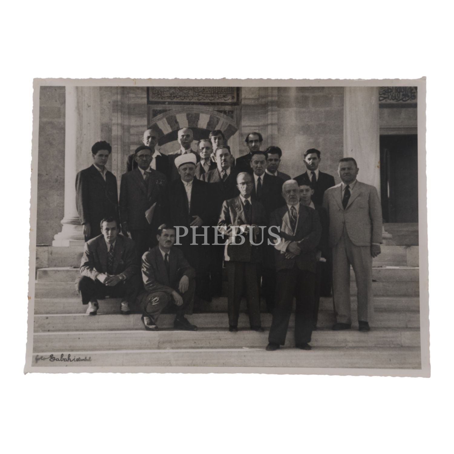 Ortada klasik Türk mûsıkisi bestecisi Hafız Sadettin Kaynak'ın olduğu siyah beyaz fotoğraf.