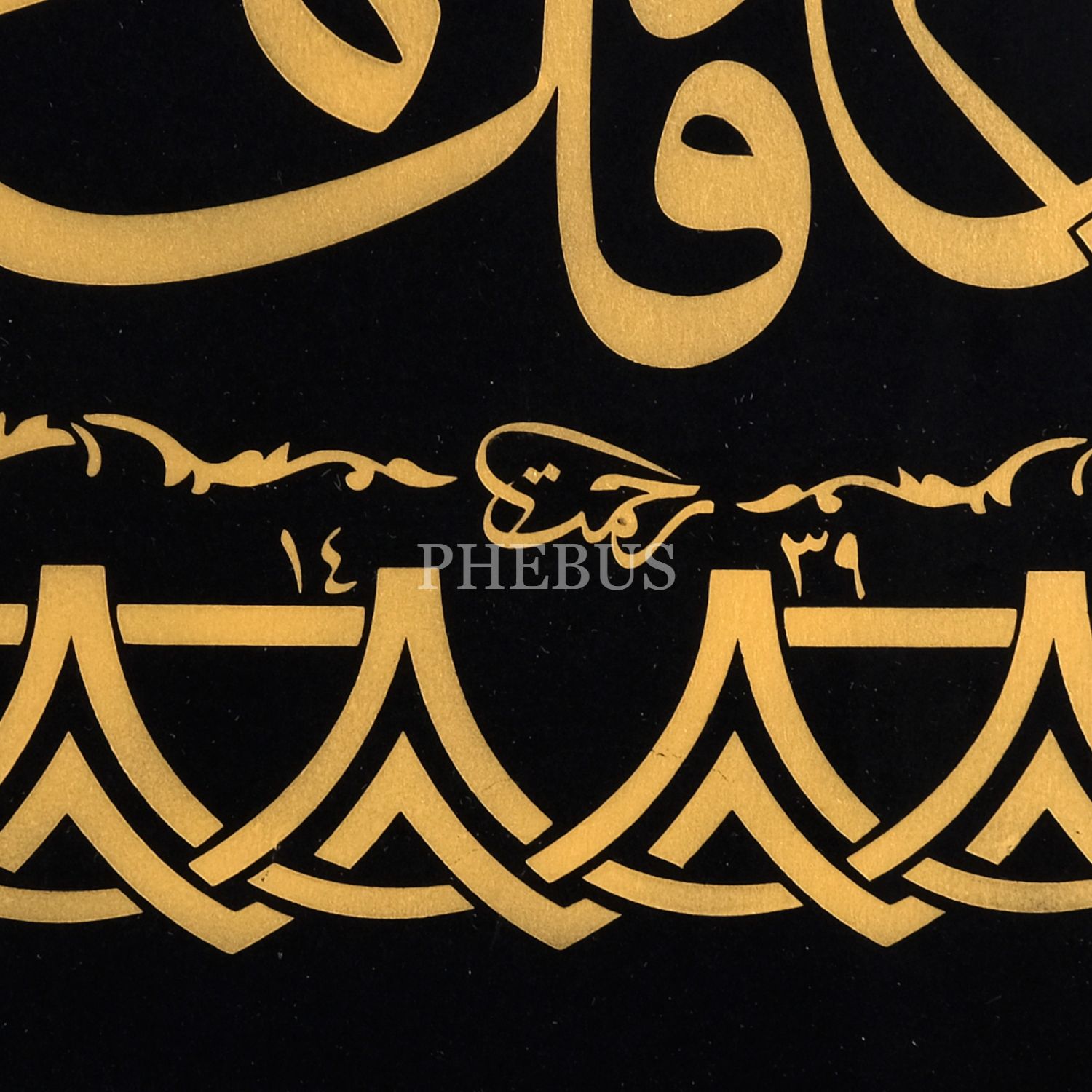 Üstteki kemerli kısımda kûfî yazıyla kelime-i tevhid, altta celî sülüs yazıyla İhlâs sûresi yazılıdır.
