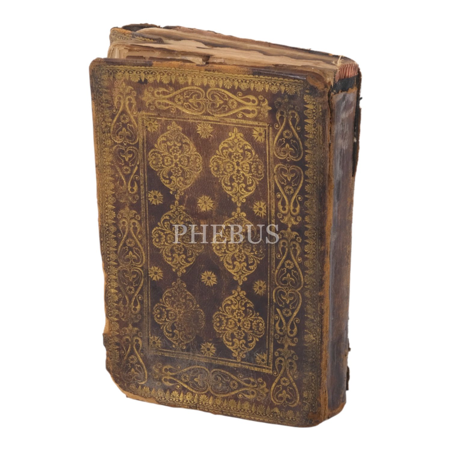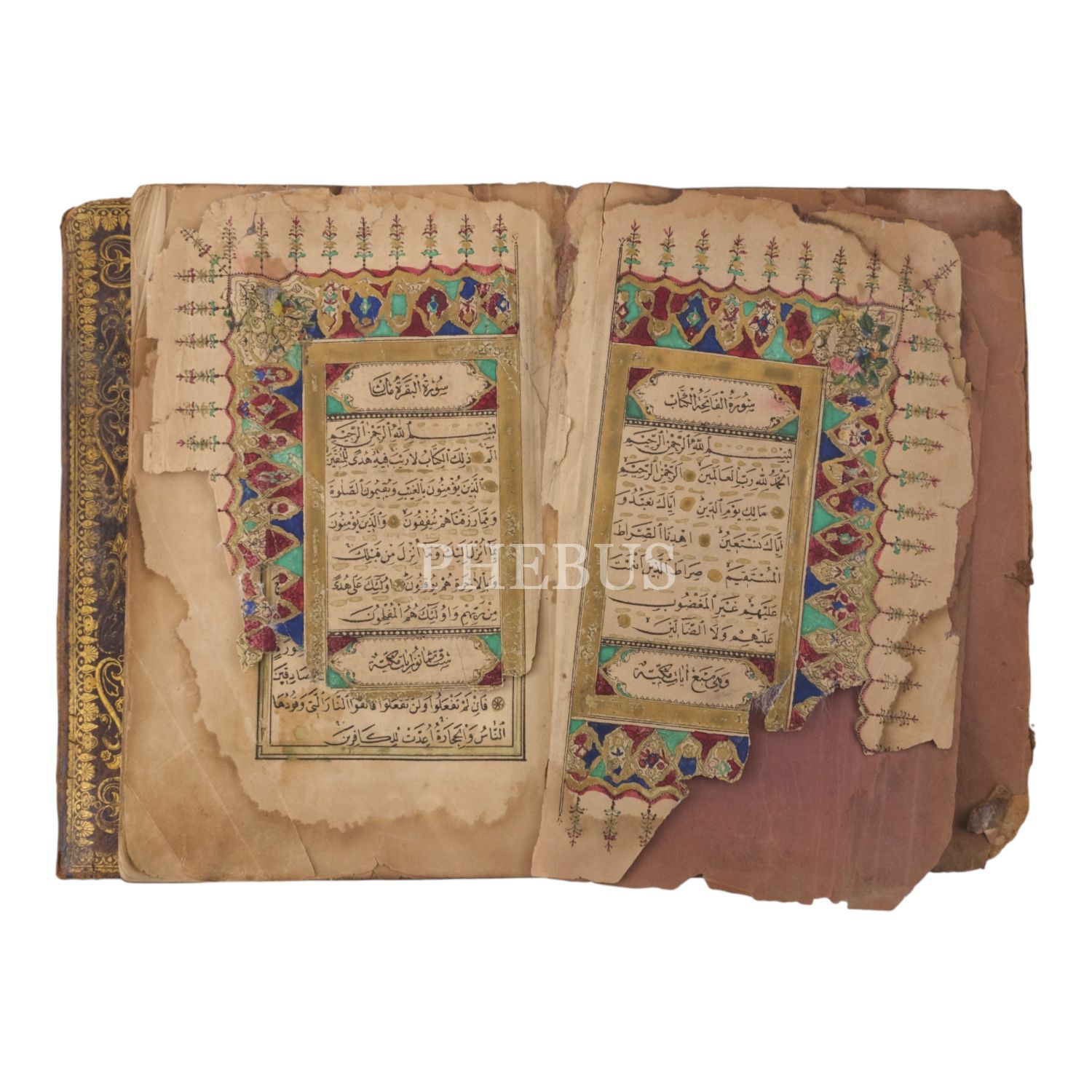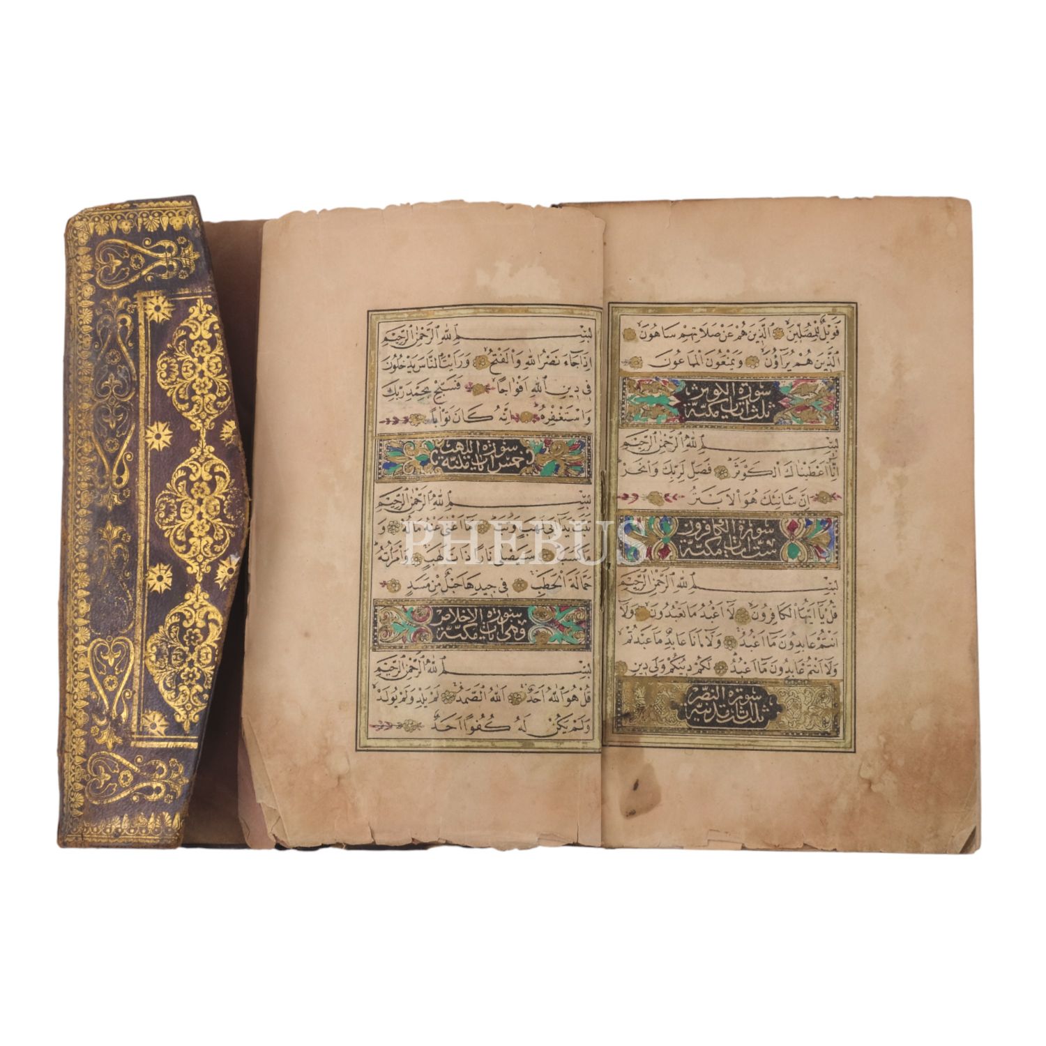 Mıklebli ve yaldız işlemeli deri dönem cildinde Osmanlı dönemi renkli taş baskı Kur'ân-ı Kerim.
