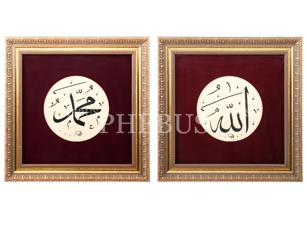 Fuad (Başar) ketebeli 2 adet celî sülüs levha, 1442 tarihli, yazı çapı: 17 cm, çerçeve içi ölçü: 29x29 cm...