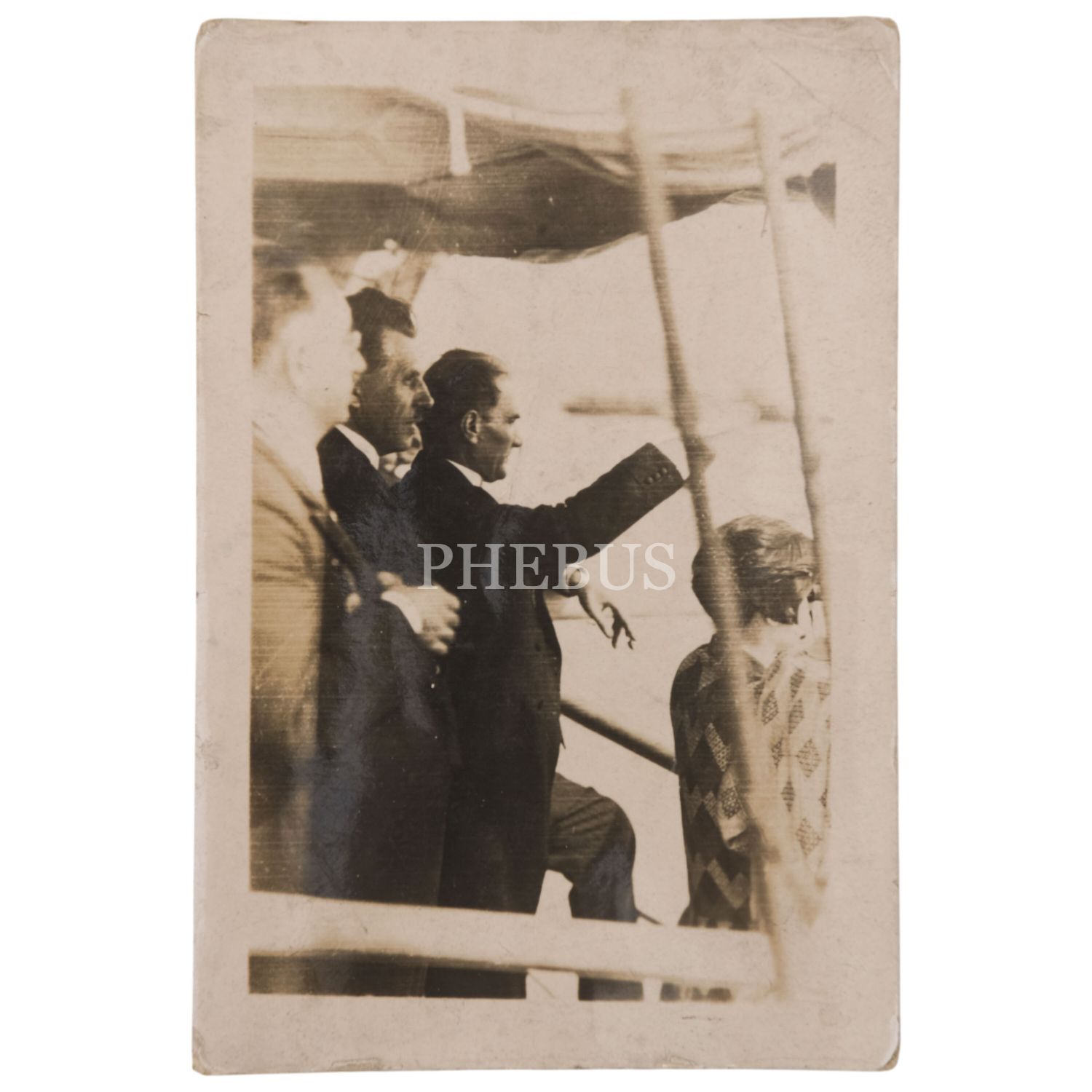 Cumhuriyet döneminde İstanbul’a ilk ziyaretini ancak 1927 yılında gerçekleştirebilen Mustafa Kemal Atatürk, Ertuğrul Yatı ile şehre girerken kendisini karşılayan İstanbulluları beyaz mendiliyle selamlıyor, 1 Temmuz 1927, 6,5x9,5 cm...
