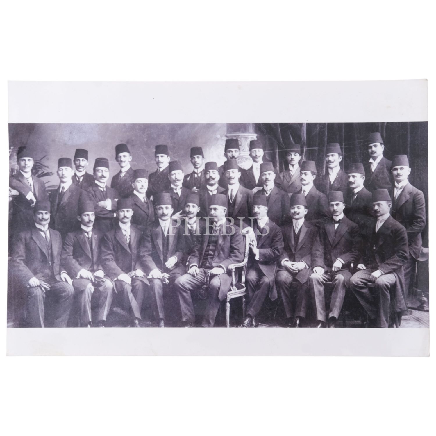 Osmanlı Hükümeti tarafından eğitimlerini tamamlamaları için Almanya´ya gönderilen zabitan heyetinin Berlin´de aldırdığı toplu hatıra fotoğrafı, fotoğrafta Enver Paşa da yer almaktadır, 30,5x20 cm...