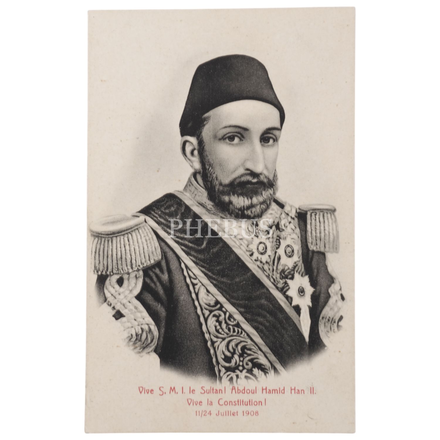Sultan II. Abdülhamid´in, II. Meşrutiyet´in ilanından sonra yayımlanmış bir kartpostalı, Fransızca yazılı, 9x14 cm...