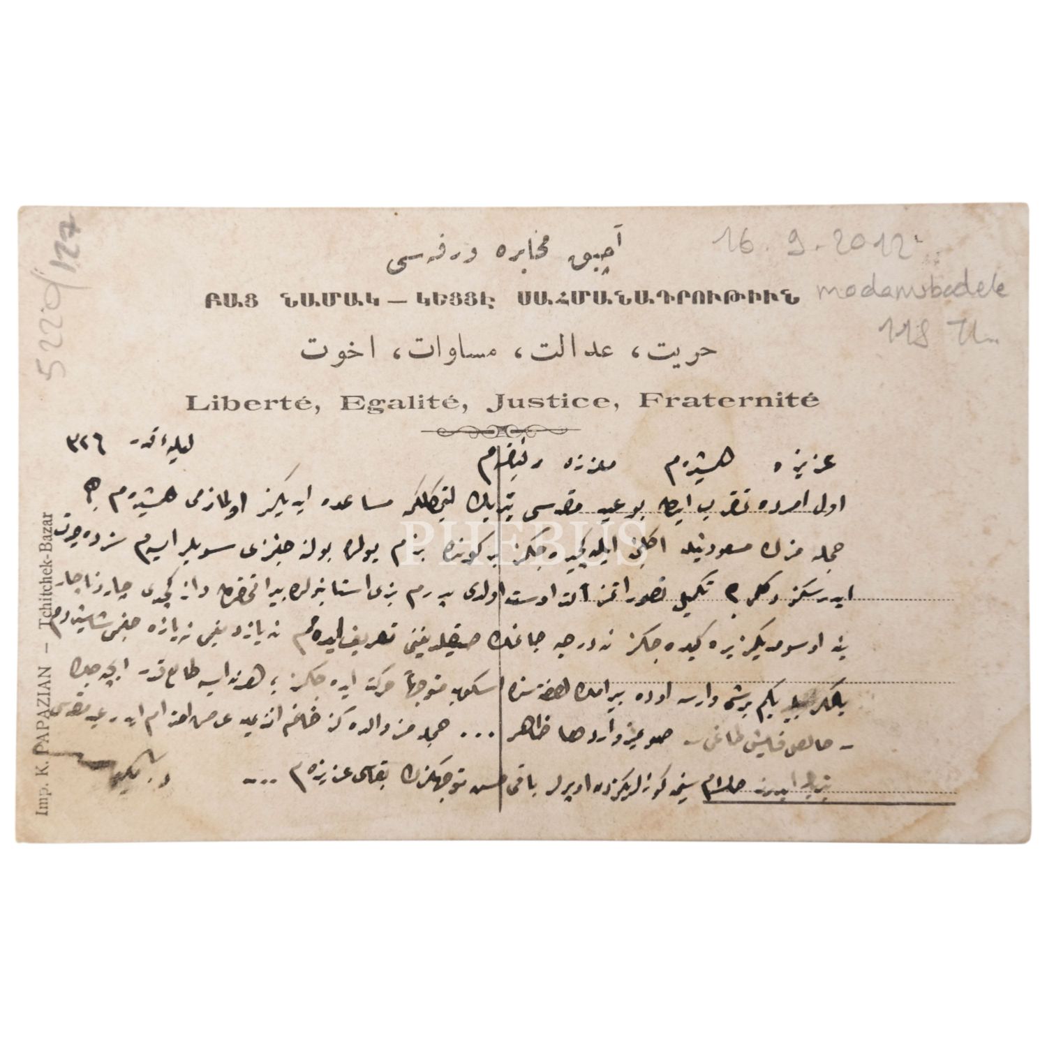 Arka yüzünde Osmanlıca mektup yer almaktadır.