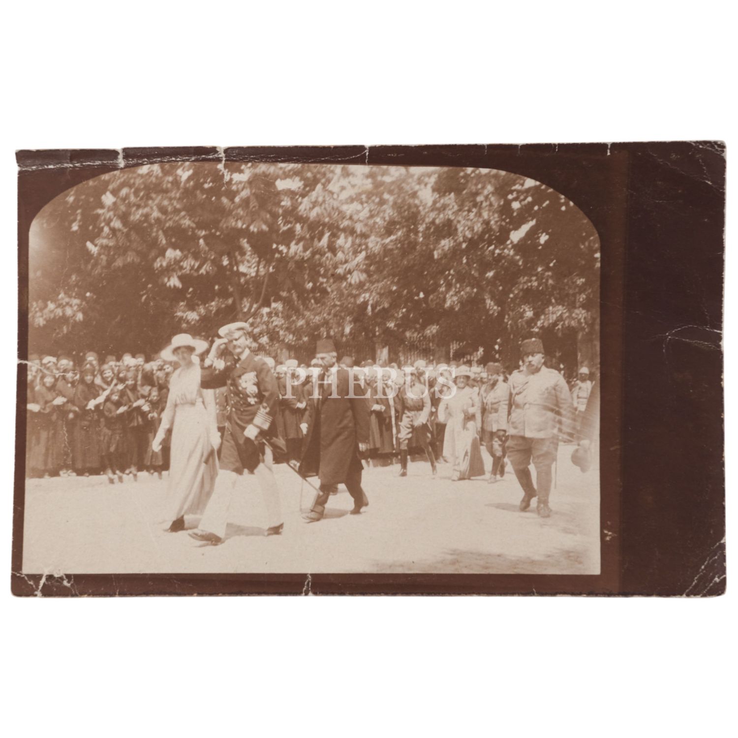 Sadrazam Damad Ferid Paşa ve Ahmet İzzet Furgaç´ın eşlik ettiği bir yabancı lider ile eşinin, Ayasofya ziyaretlerinde çekilmiş enstantane fotoğraf, 14x9 cm...