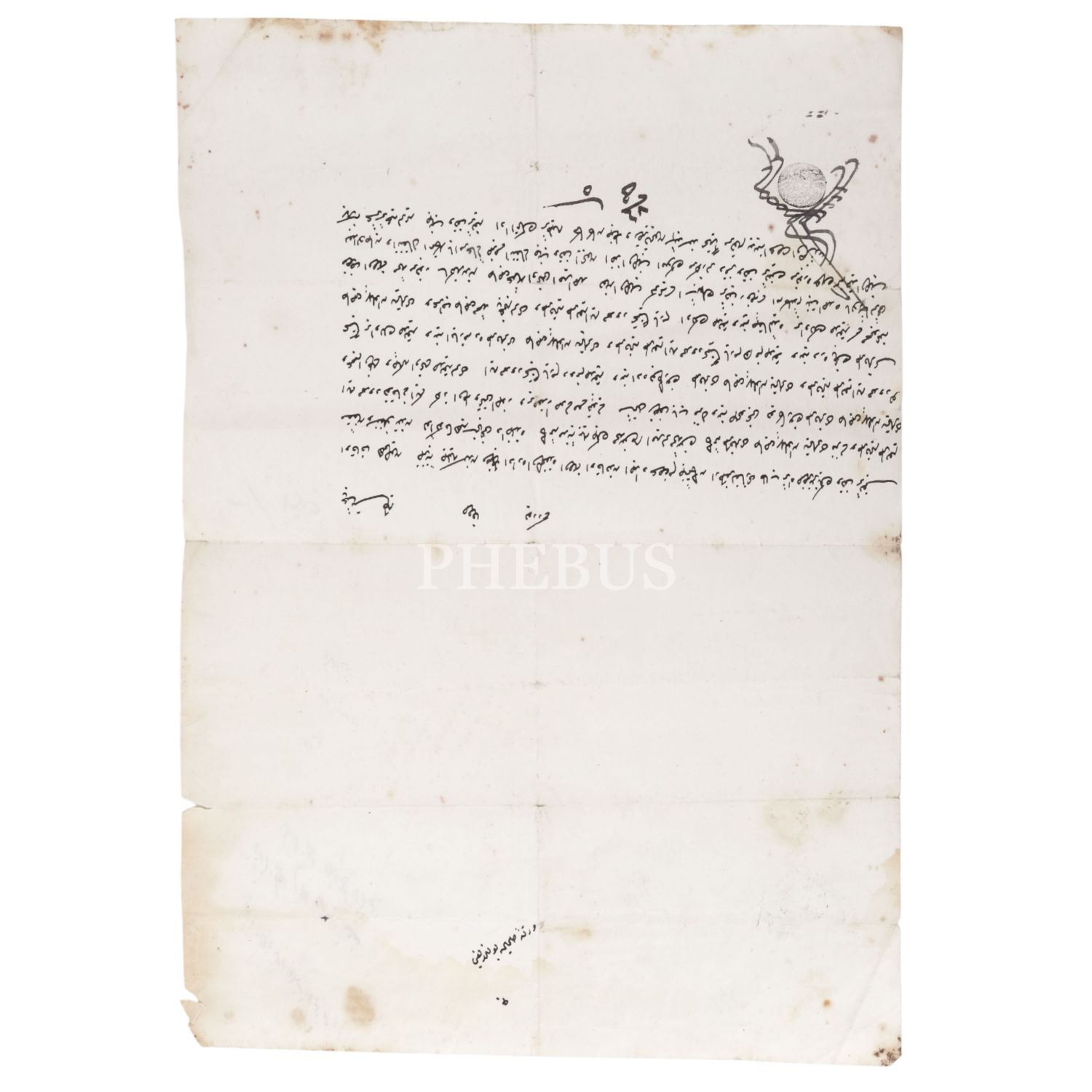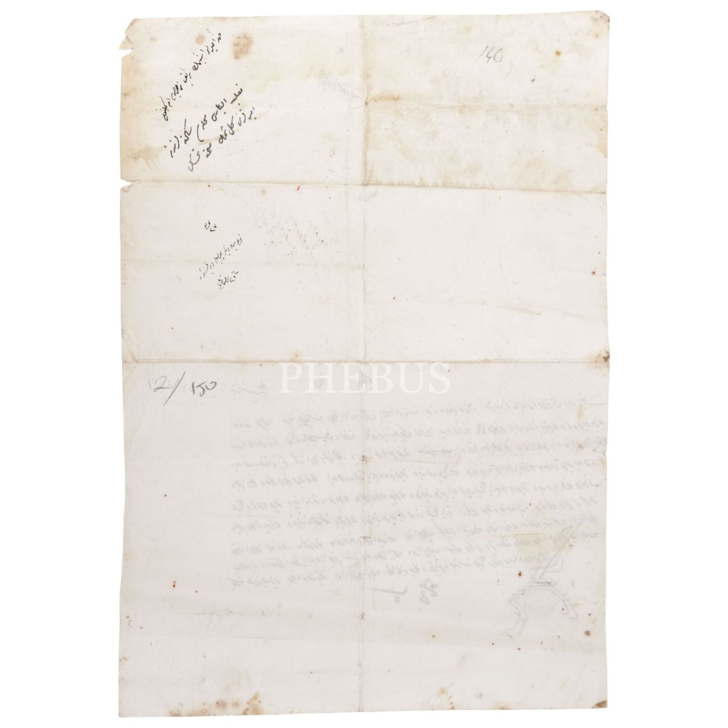 Kütahya’da Ertuğrul Gazi evkafına bağlı bir vakfın mutasarrıfı olan Hacı Osman oğlu Emir Ahmet’in vefatı üzerine, vakfın mutasarrıflığına merhumun kızının tayin edildiğini bildiren; Kütahya Mutasarrıf Müdürü Ahmed Hilmi Paşa’nın pençe ve mührünü taşıyan evrak, 1274, 25×35 cm...