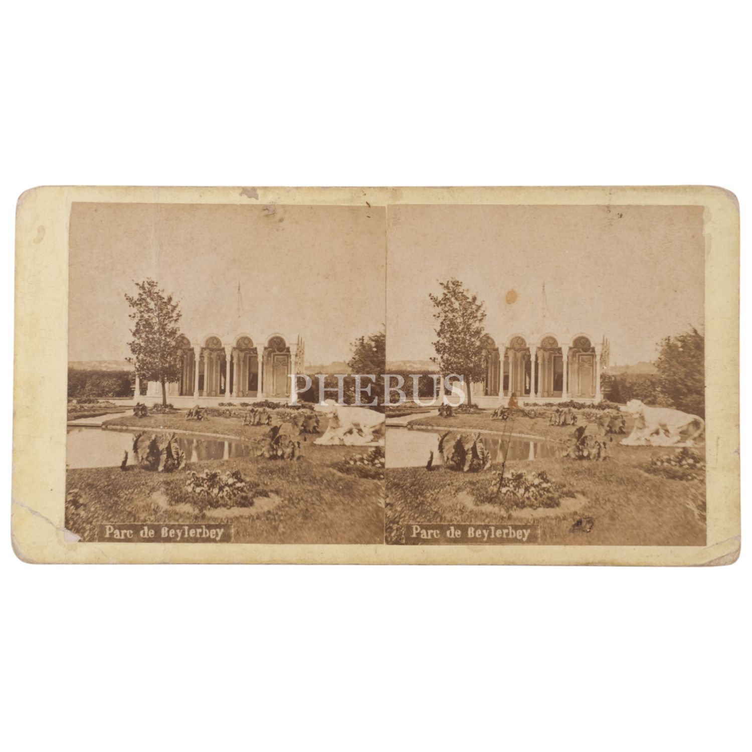 Rum kökenli saray fotoğrafçısı Vasilaki Kargopulo´nun (Basile Kargopoulo) objektifinden Beylerbeyi Sarayı´nın bahçesi, stereoview kart, 18x9 cm...