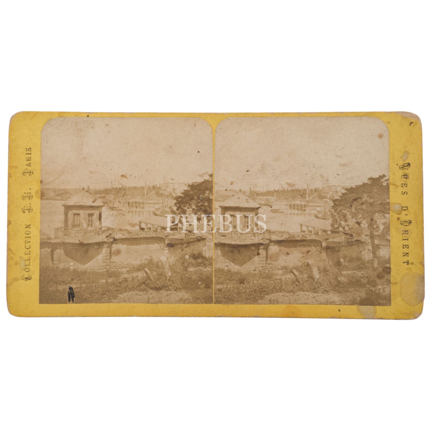 Paris´te yayımlanan E. H. Koleksiyonu´nun "Doğu Manzaraları" serisinden Kasımpaşa görselli stereoview kart, 17,5x8,5 cm...