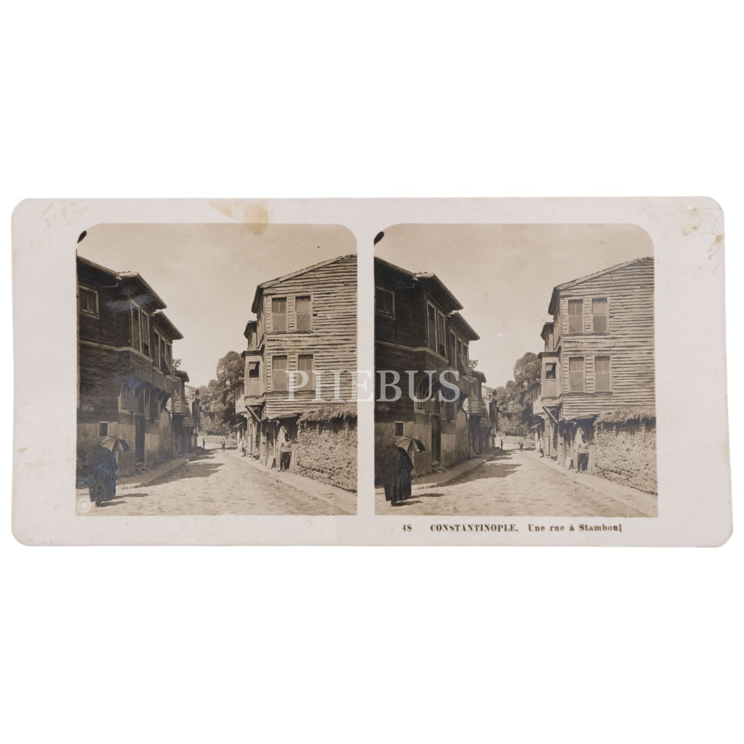 İstanbul´dan bir sokak görselli stereoview kart, "Constantinople - Une rue a Stamboul", 17,5x9 cm...