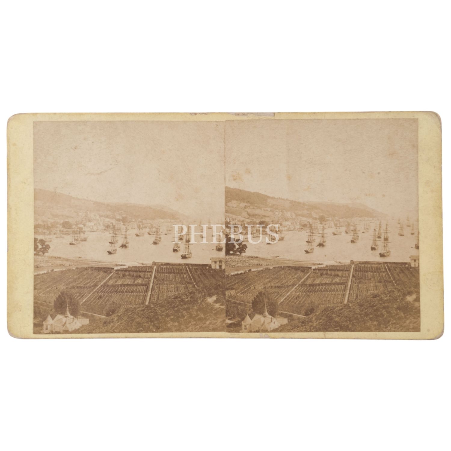Rum kökenli saray fotoğrafçısı Vasilaki Kargopulo´nun (Basile Kargopoulo) objektifinden Boğazda gemiler, stereoview kart, 16,5x8,5 cm...