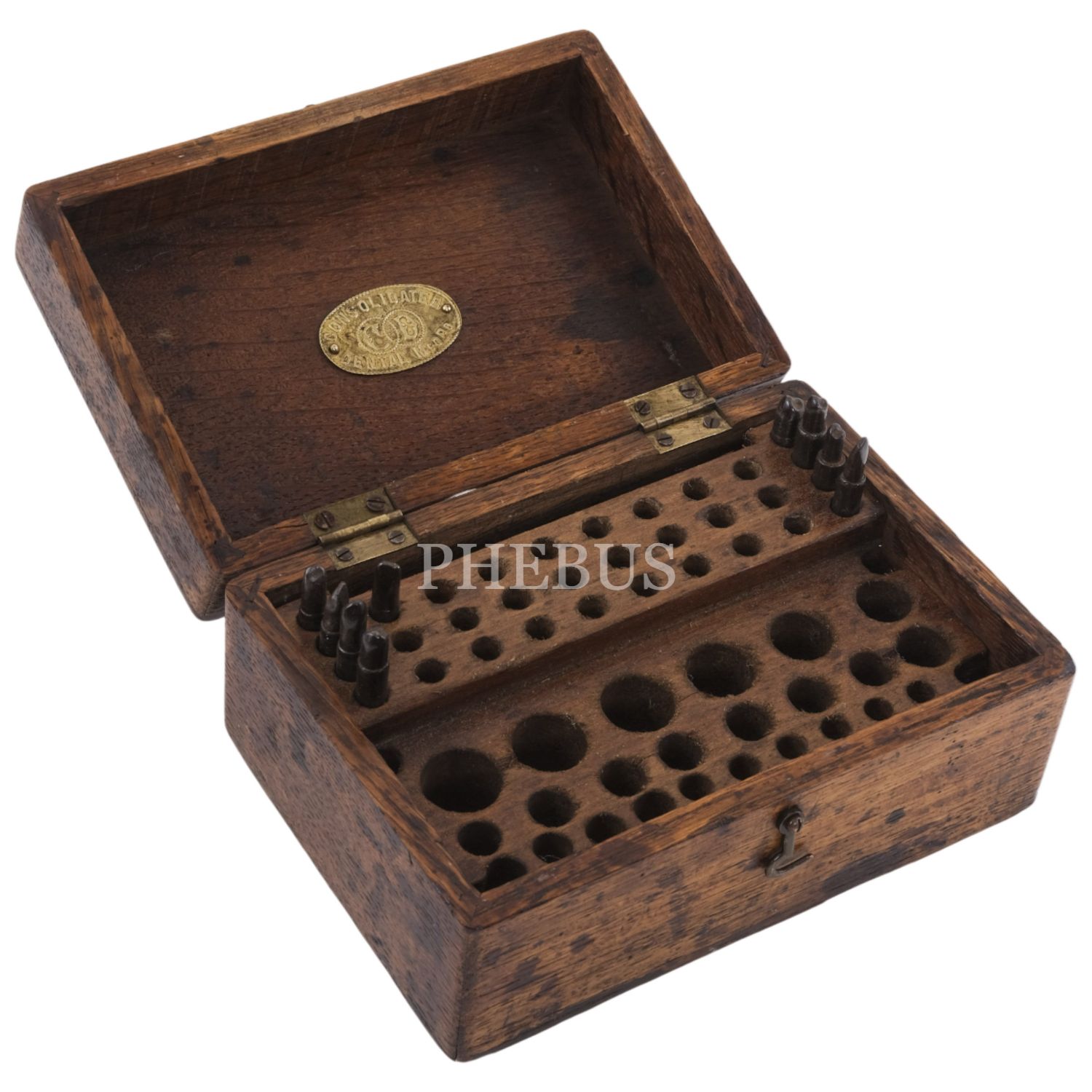 Osmanlı döneminden, "Consolidated Dental" plakalı ahşap diş hekimi çantası, 3 adet "Constantinopel - Athenes" ibareli metal diş hekimi aleti, takma diş örnekleri ve diş hekimi tarafından hazırlanmış çok sayıda protez diş, çanta 20x13x10 cm..