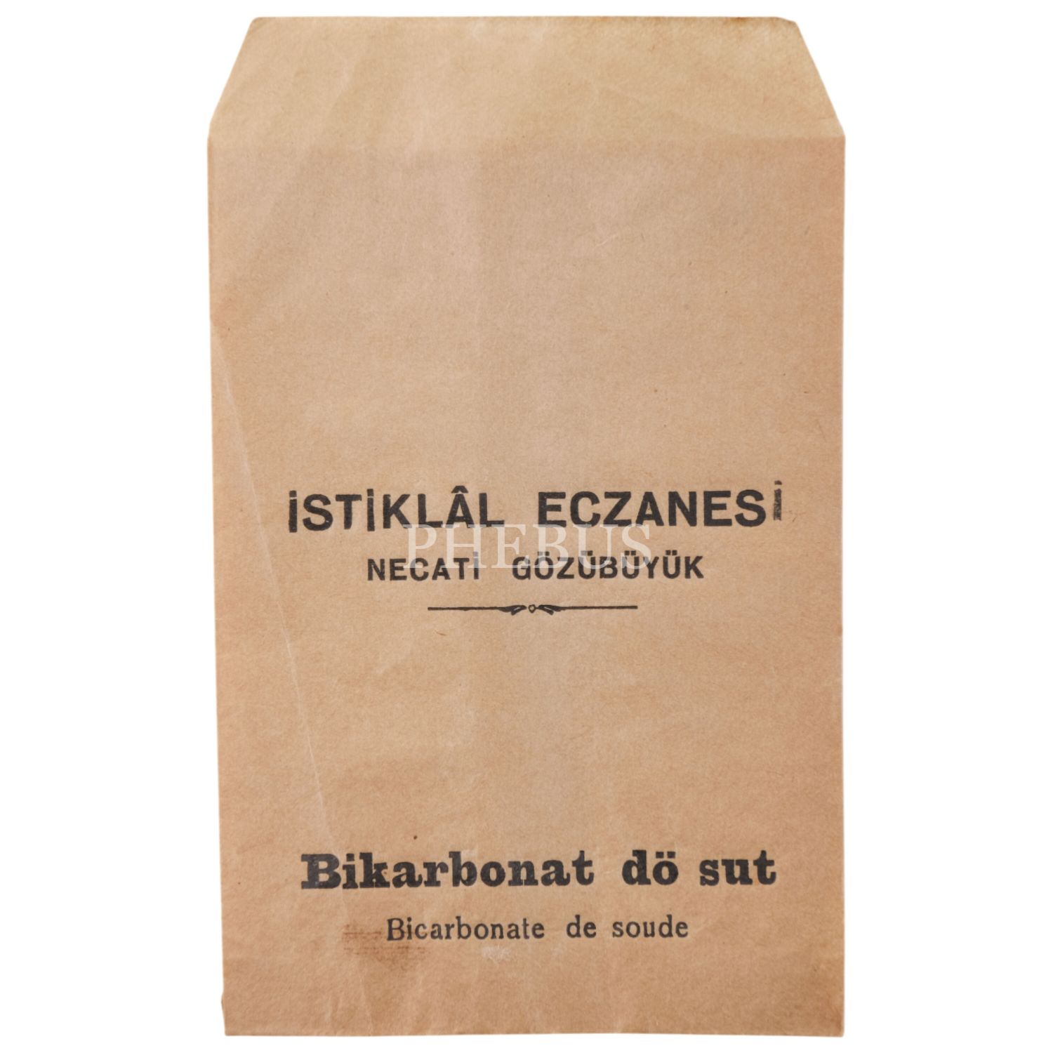 Necati Gözübüyük tarafından işletilen İstiklâl Eczanesi´nin, "Bikarbonat dö sut" (Bicarbonate de soude) reklamlı ilaç zarfı, 8x13 cm...