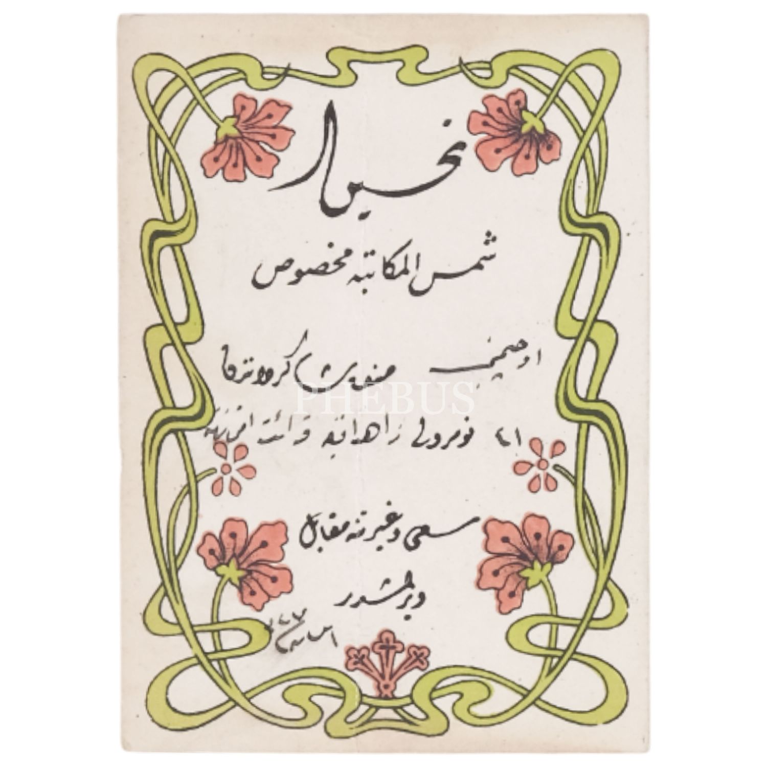 Şems´ül-Mektep öğrencilerinde Zahit Efendi´ye verilmiş tahsin varakası, 1327, 9x13 cm...