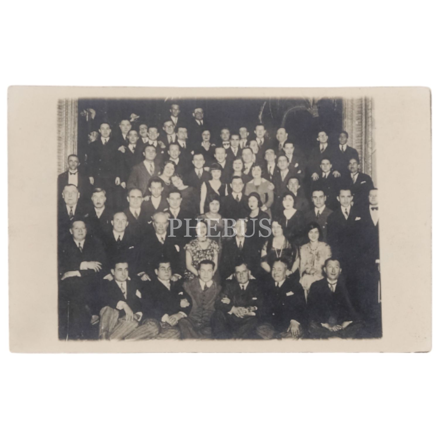Hüseyin Rahmi Gürpınar´ın, bir tiyatro topluluğunun arasında görüldüğü hatıra fotoğrafı, 14x9 cm...