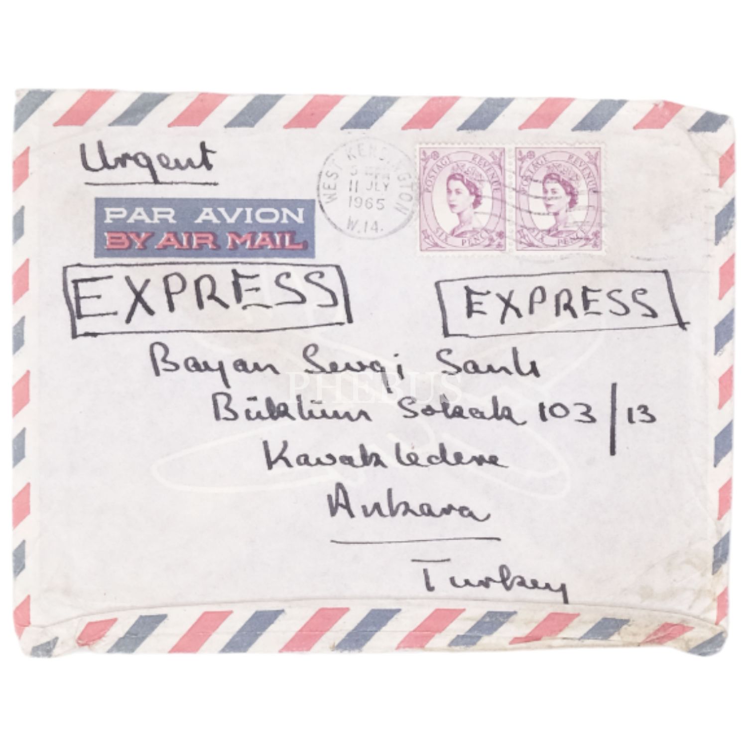 Fakir Baykurt´un, Sevgi Sanlı´ya gönderdiği el yazısı mektuplu kartpostal, zarfıyla birlikte, 30 Ekim 1962, 15x10,5 cm...