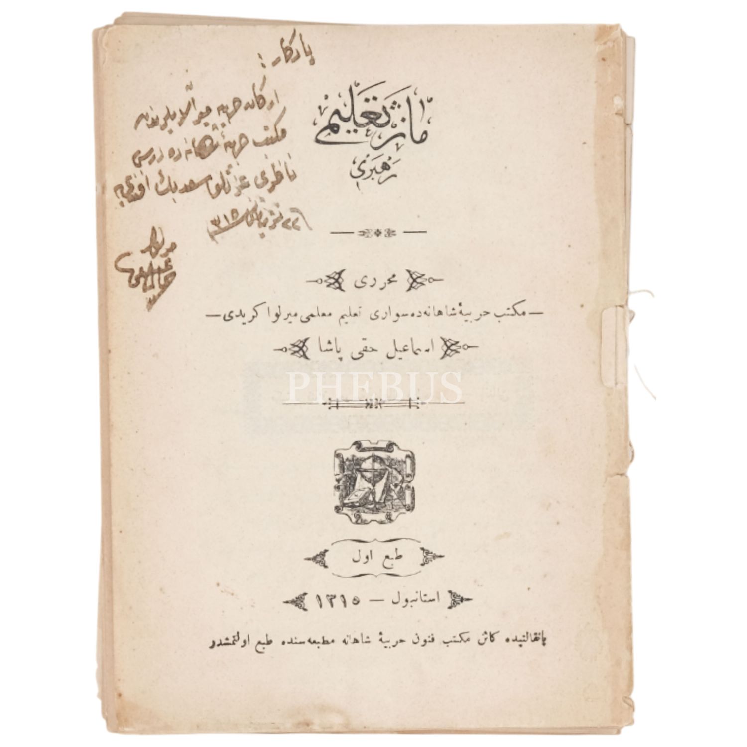MANEJ TALİMİ REHBERİ, İsmail Hakkı Paşa, 1315, Mekteb-i Fünun-u Harbiye-i Şahane Matbaası, 127 sayfa, 13x18 cm...