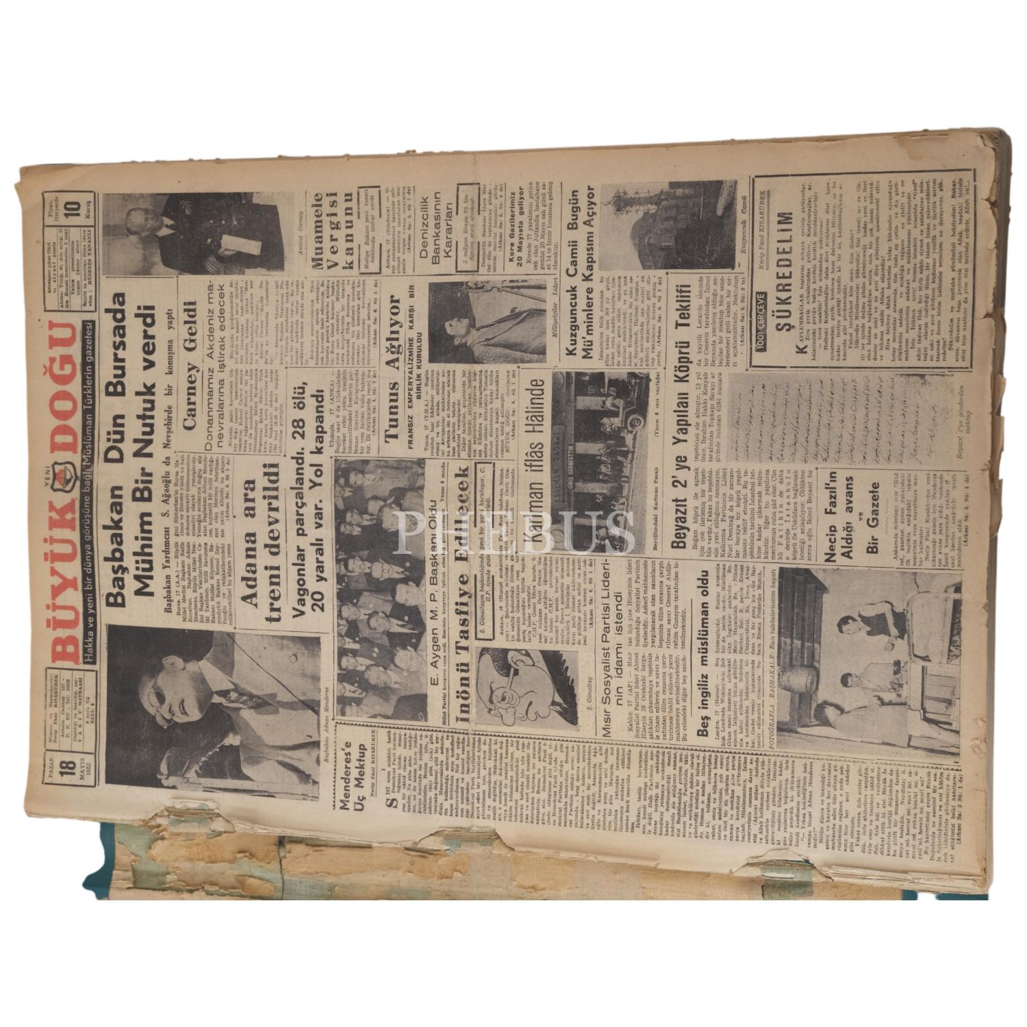 Necip Fazıl Kısakürek´in çıkardığı ve başmuharrirliğini üstlendiği YENİ BÜYÜK DOĞU dergisinin 18 Mayıs 1952 ila 16 Eylül 1952 tarihleri arasında yayımlanan nüshaları, 37x55 cm...