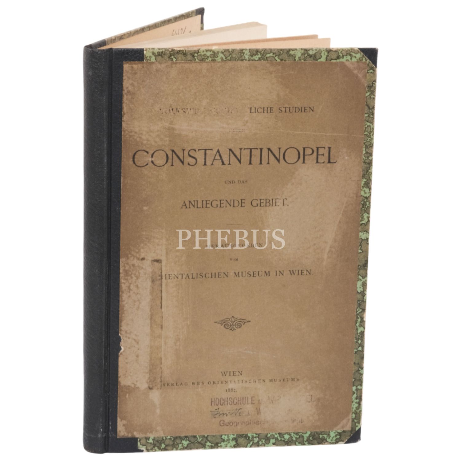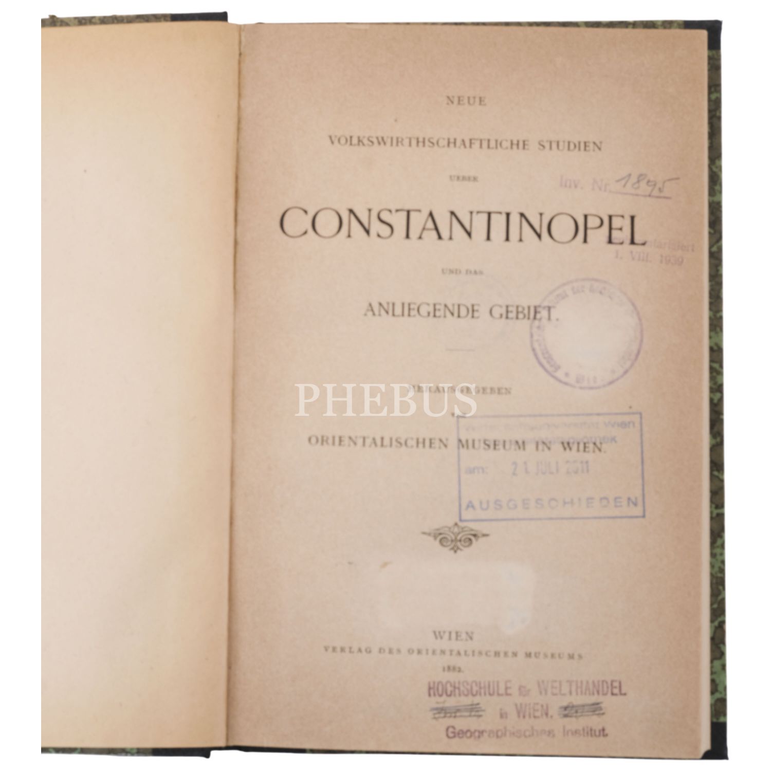 Viyana Dünya sergisi için önemli Levanten limanlarının ekonomik ve ticaret durumlarını yansıtan dizinin İstanbul için hazırlanan kitabıdır. Kitabın yazılmasına Avusturya’nın İstanbul başkonsolosu Ritten von Schwegel önayak olmuştur. Kitap, değişik yazarlarca yazılan 35 yazı ile 2 ekten oluşmaktadır. Kitapta Avusturya-Macaristan imparatorluğunun İstanbul’daki ticaret odası, Avusturya ile Osmanlı İmparatorluğu arasındaki ticaret antlaşmaları ve gümrük tarifeleri, kabotaj, fenerler ve liman işletmeleri, Osmanlı devlet borçları, Osmanlı madeni paraları, buharlı gemi seferleri ve kargo taşımacılığı, İstanbul limanına ait istatistiki bilgiler, afyon (haşhaş), gülyağı, sünger, halı, moher, şeker, bira, ilaç, kimyasal maddeler, müzik enstrümanları, cam ve porselenden yapılmış mamüller, şapkalar (fes vs), kadın giyimi, ipek, kadife, işlemeler ve süslemeler anlatılmaktadır. 1. ek bölümünde Osmanlı gümrüğünün ithal ürün ve ülke bazında uyguladığı gümrük vergisi miktarları, sonraki bölümde 1872’den itibaren İstanbul limanından çıkış yapan yelkenli ve buharlı gemilerin bandıra bazındaki adet ve tonaj istatistikleri, sonraki tabloda ise Selanik, İzmir, Beyrut ve başka limanlara giriş-çıkış yapan gemilerin adet ve tonaj değerleri ülke bazında verilmektedir. Son bölümde Osmanlı imparatorluğunun 1879-1880 arasında ithal ve ihraç ettiği malların miktarları çok detaylı tablolar halinde sunulmaktadır. Arthur von Scala (1845-1909) müzeci ve iktisatçıydı. 1897 ile 1909 arasında Viyana’daki Orientalischen Museum’un direktörlüğünü yapmıştır. İlk defa görülen son derece nadir bir kitaptır. Sırtı bez, kapakları karton cildinde. Arka kapağı ebru desenlidir.