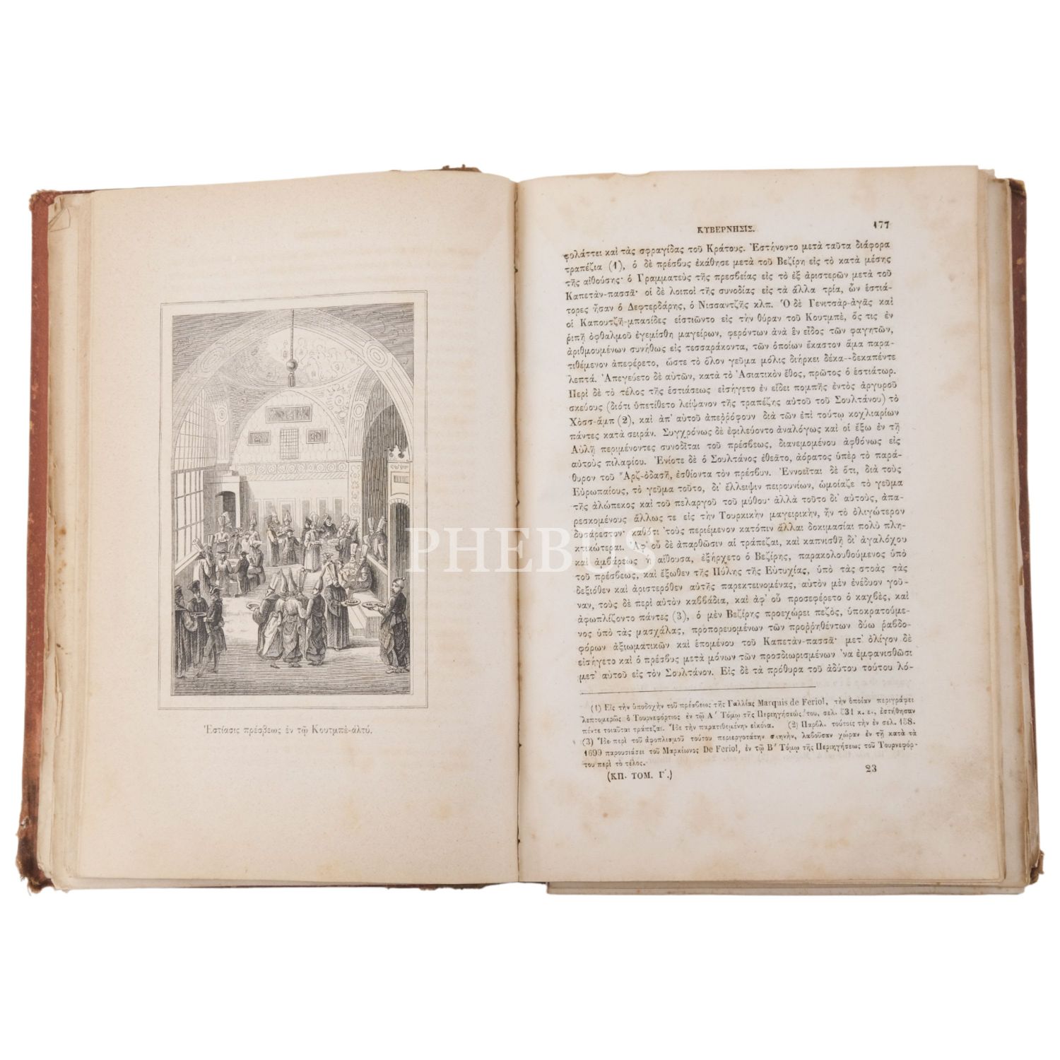 İstanbul´a topografik, arkeolojik ve tarihsel bir bakış sunan üç ciltlik Yunanca çalışmanın üçüncü cildi. S. Bizantios, 1869, Atina, 656 sayfa, 19x27 cm...
