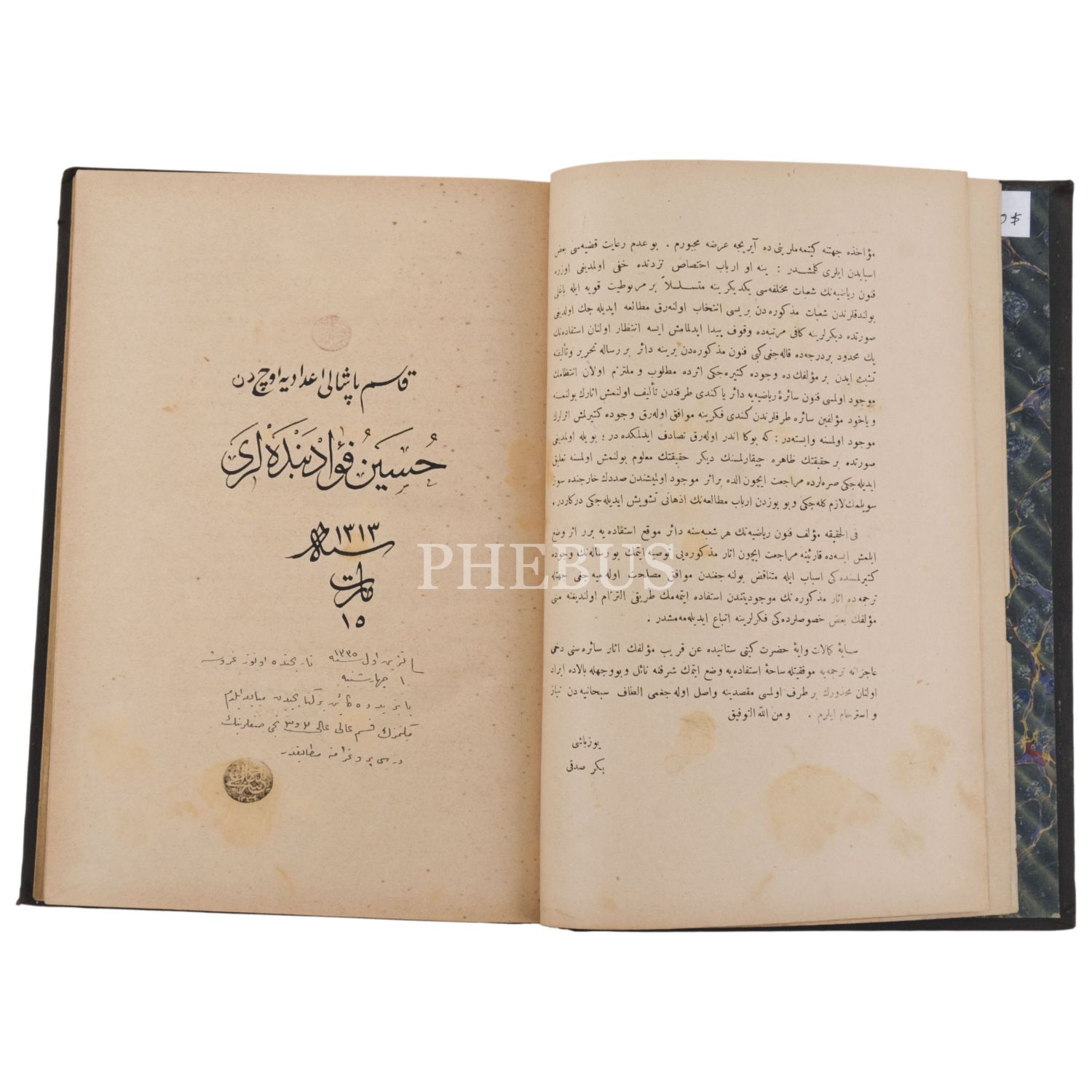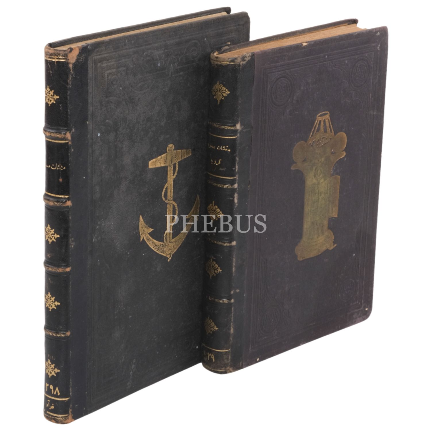 Sırtı deri kaplı, bahriye temalı motiflerle bezenmiş orijinal dönem cildinde...