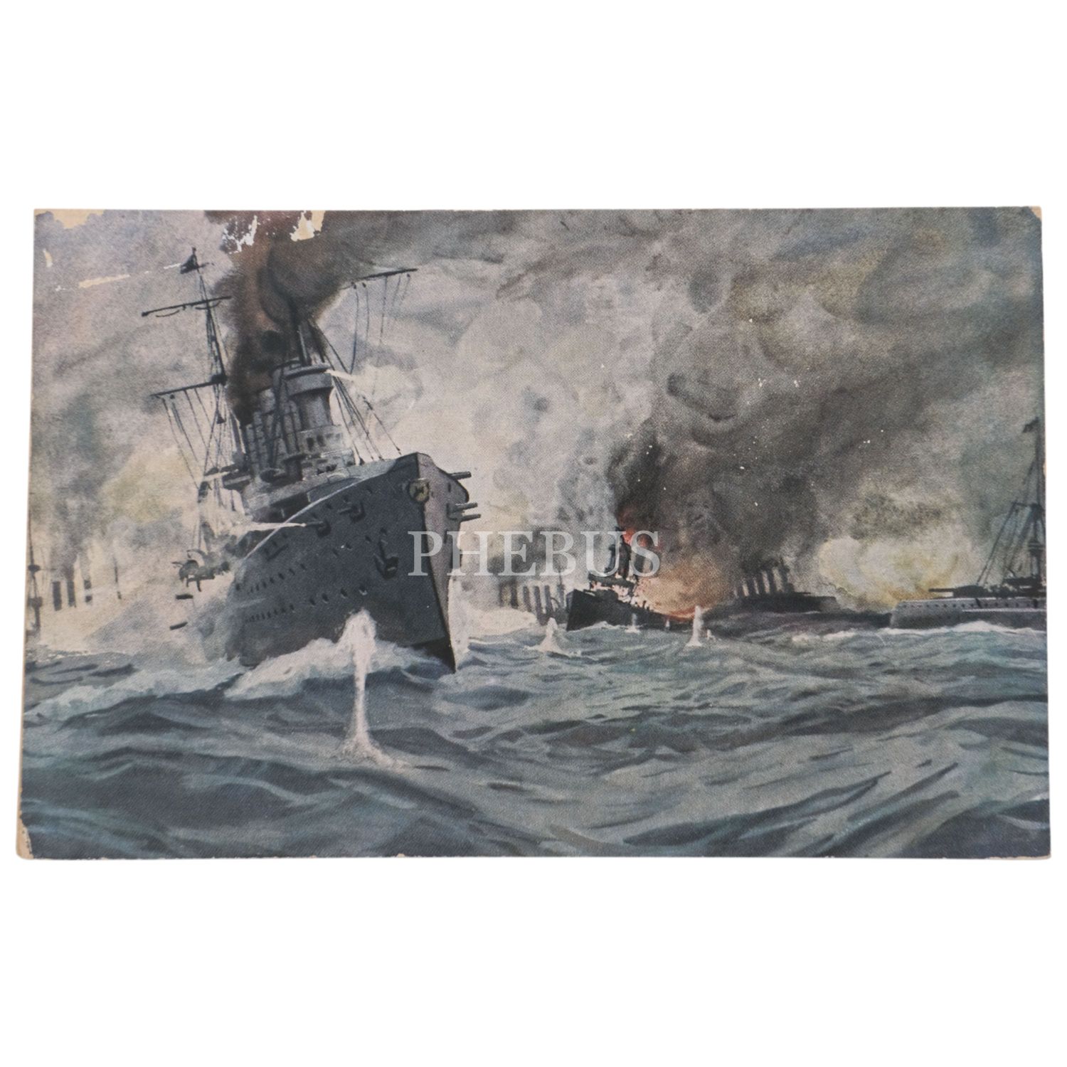 1914/15 Çanakkale Deniz Savaşları´ndan bir muharebenin resmedildiği kartpostal, 14x9 cm...