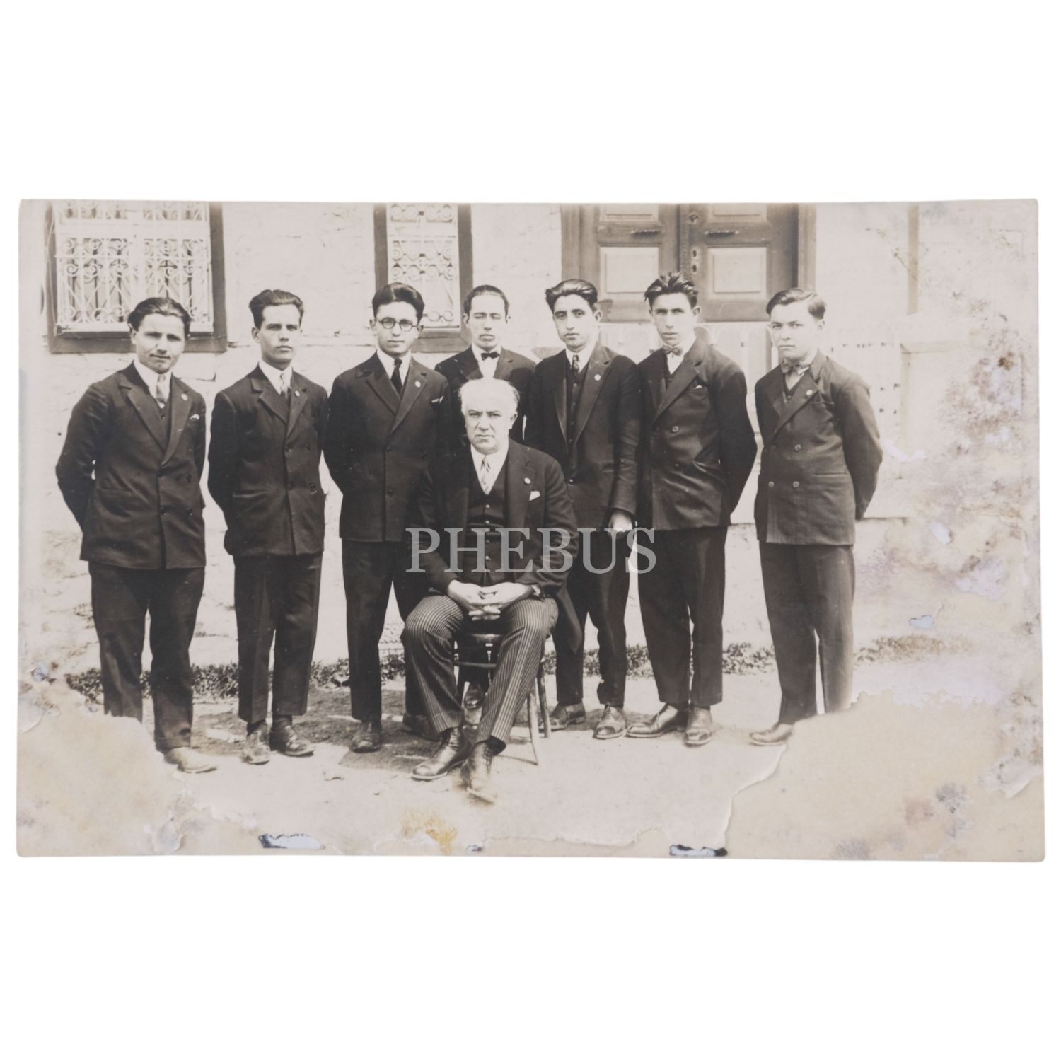 İstiklal Marşı´nın bestecisi Osman Zeki Üngör ve müdürü bulunduğu Ankara Musiki Muallim Mektebi talebesinin hatıra fotoğrafı, 1927, 14x9 cm...