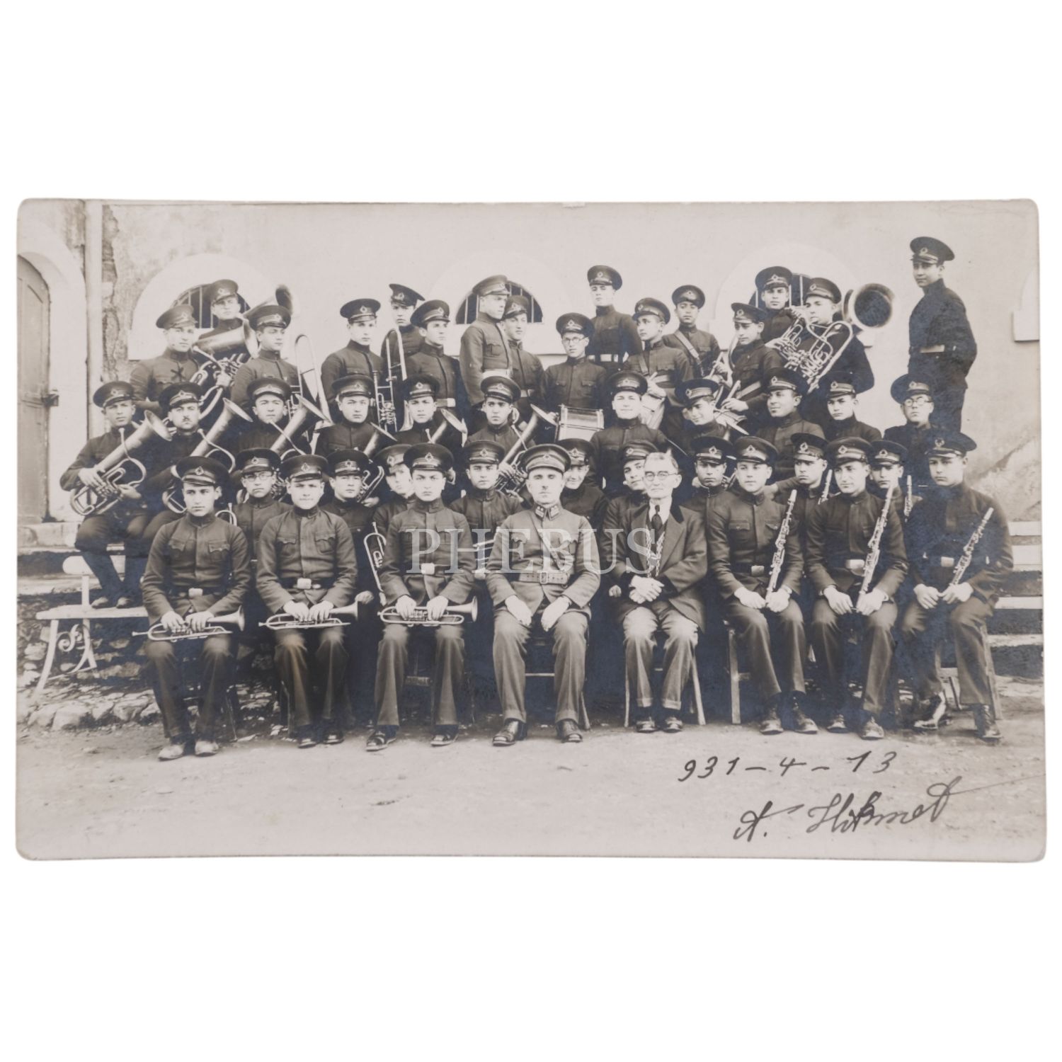 Bursa Askeri Bando Lisesi öğrecilerini hatıra fotoğrafı, 1931, 14x9 cm...
