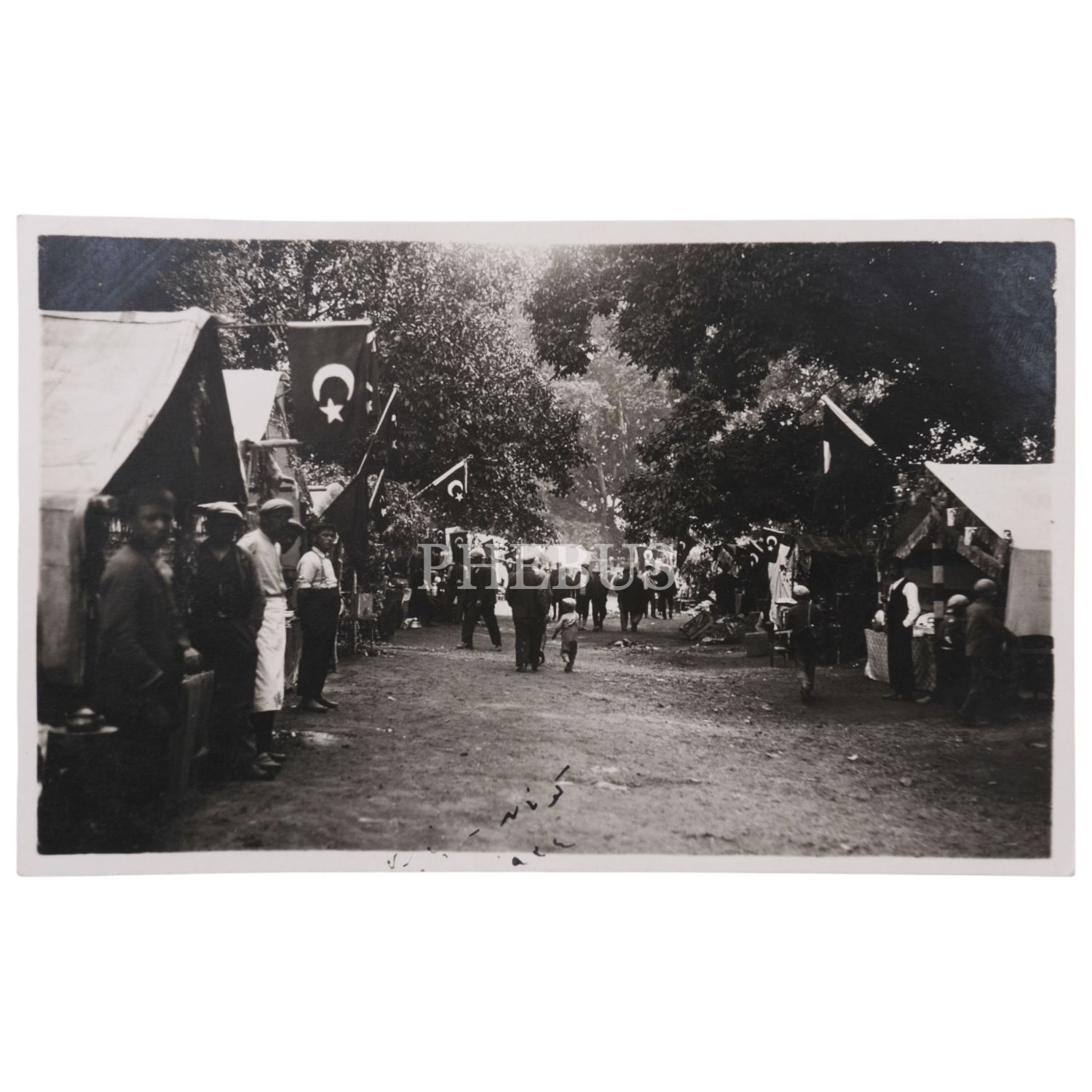Erken Cumhuriyet döneminde, Kütahya´da bayraklarla süslenmiş sokakta bir bayram günü, 14x9 cm...