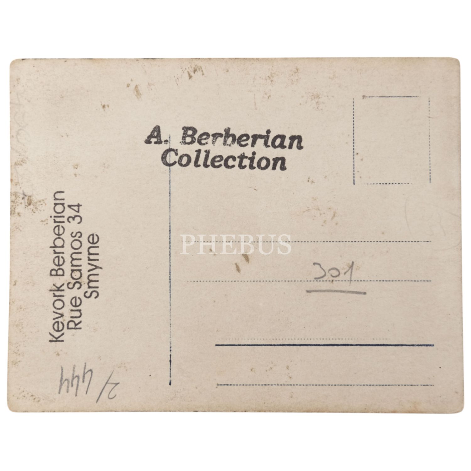 Arka yüzü "Kevork Berberian - Rue Samos 34 - Smyrne" ve "A. Berberian Collection" damgalıdır.