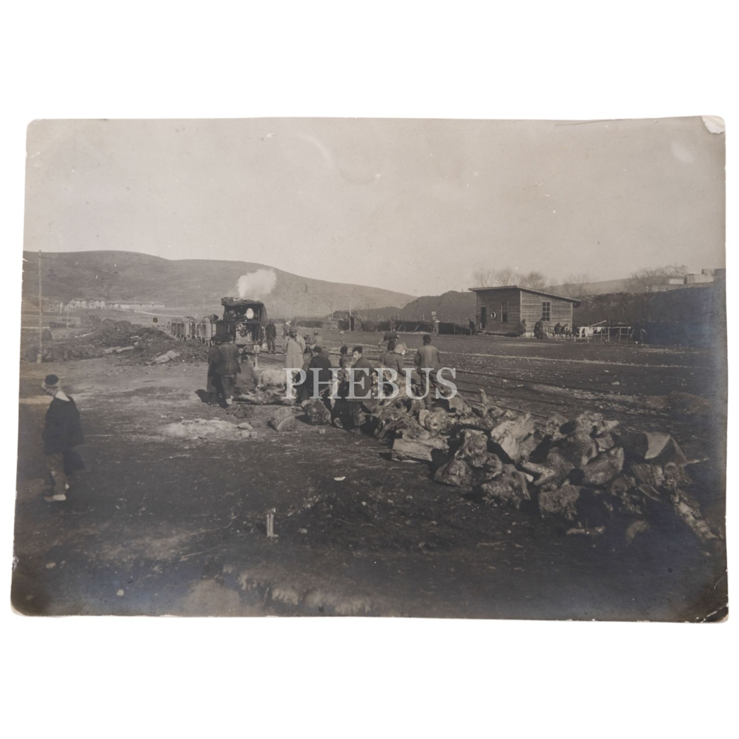 Erken Cumhuriyet döneminden, yük trenine odun yüklemeye hazırlanan köylüler, 17x12 cm...