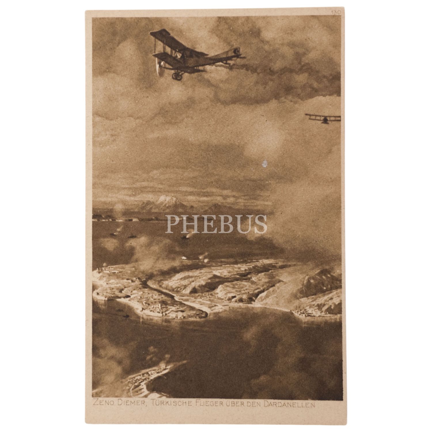 Alman ressam Michael Zeno Diemer´in, Çanakkale Boğazı üzerindeki Türk uçakları konulu resmi kullanılarak hazırlanmış, Almanya baskı kartpostal, 9x14 cm...