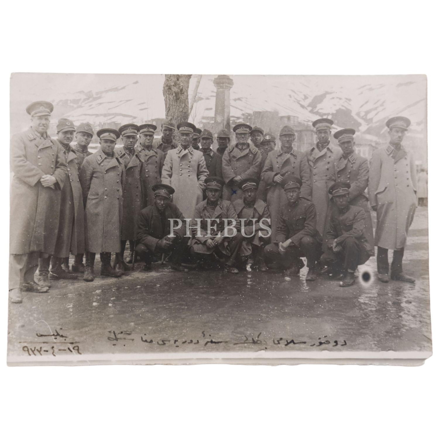 Yarbay Doktor Ahmet Selami Karaboncuk´un da aralarında bulunduğu Osmanlı askerlerinin toplu hatıra fotoğrafı, 14x9 cm...
