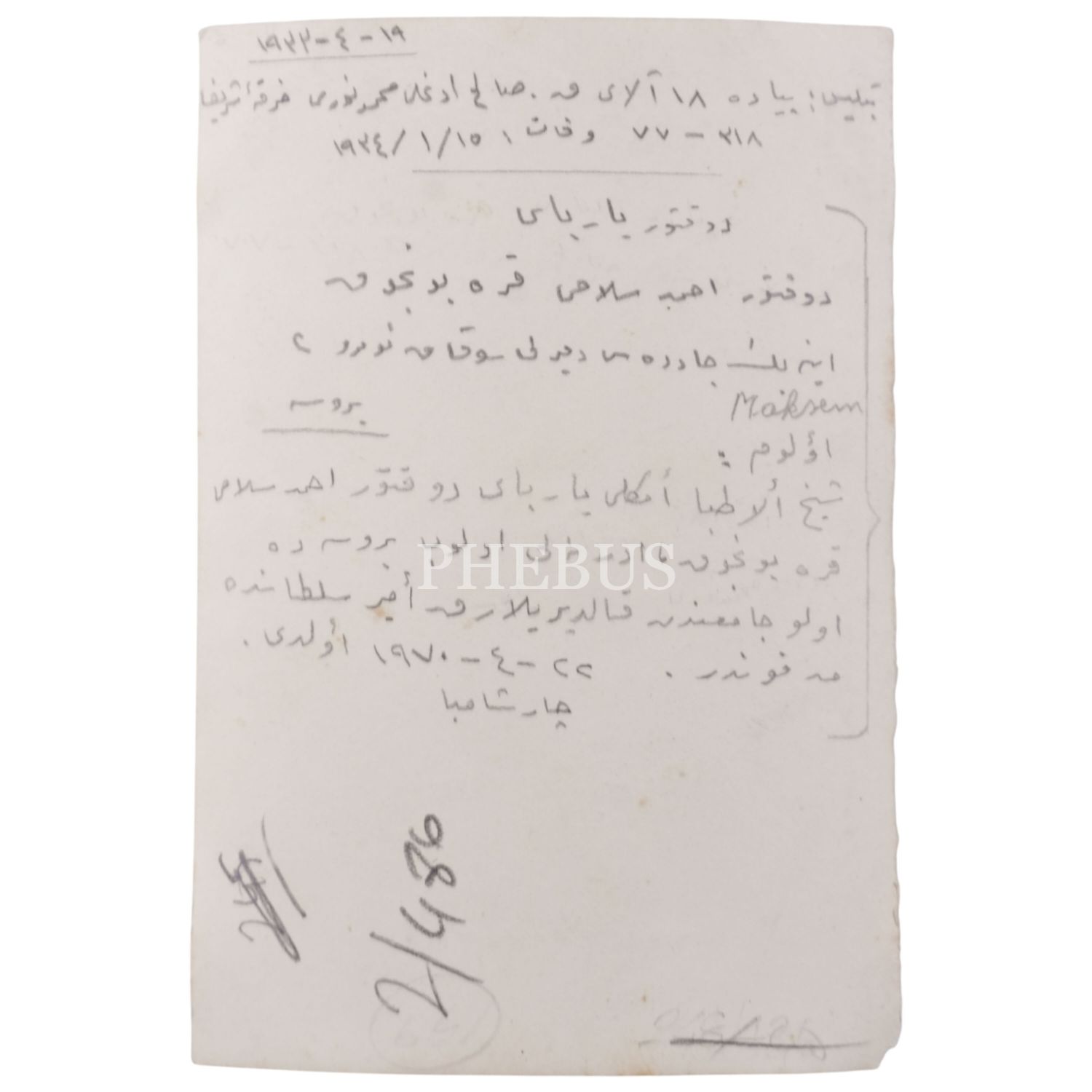 Fotoğrafın arka yüzüne sonradan Ahmet Selami Karaboncuk´un vefatı not edilmiştir.
