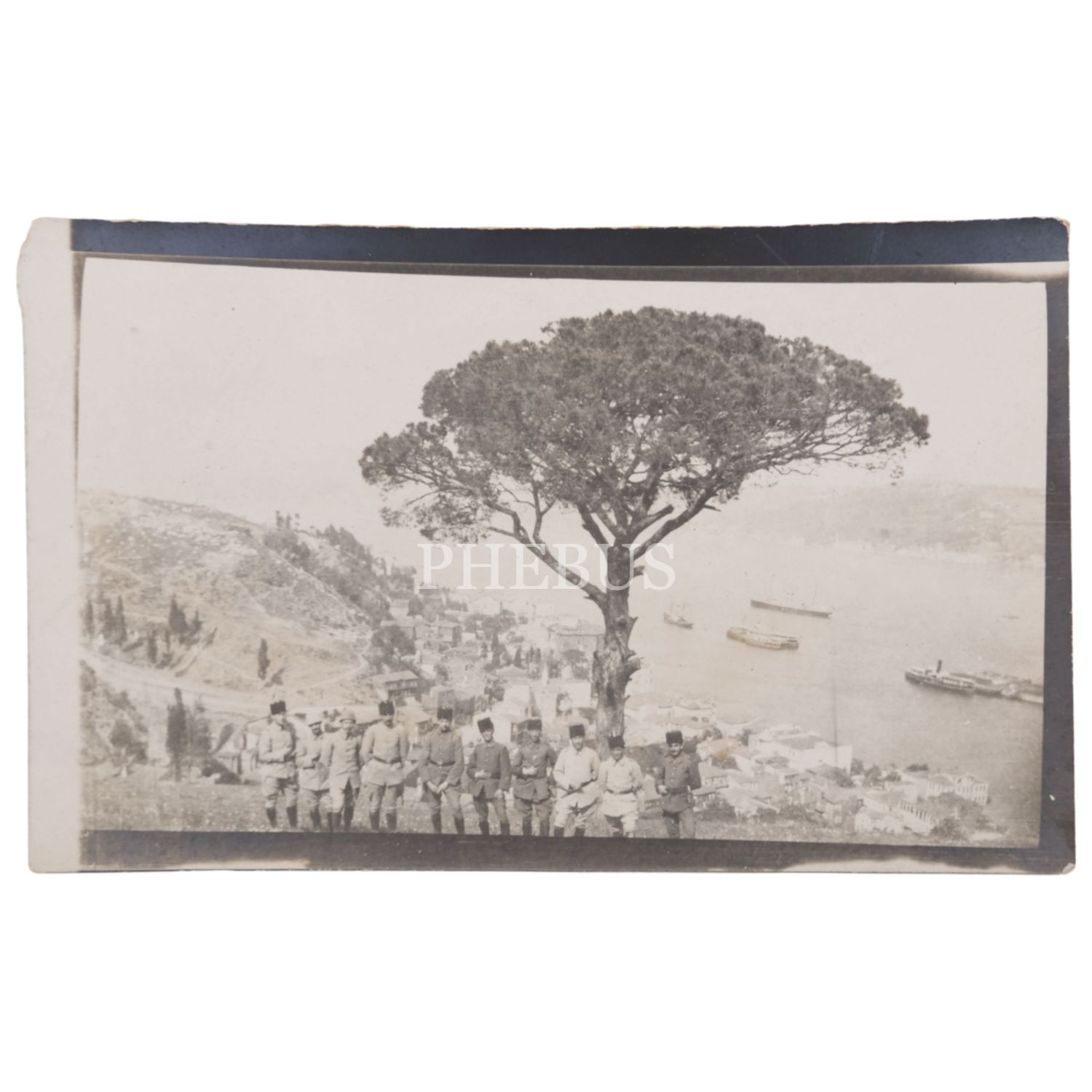 Bir grup Türk subayının, Boğaz manzarasını arkalarına alarak çektirdiği toplu hatıra fotoğrafı, 12x7,5 cm...
