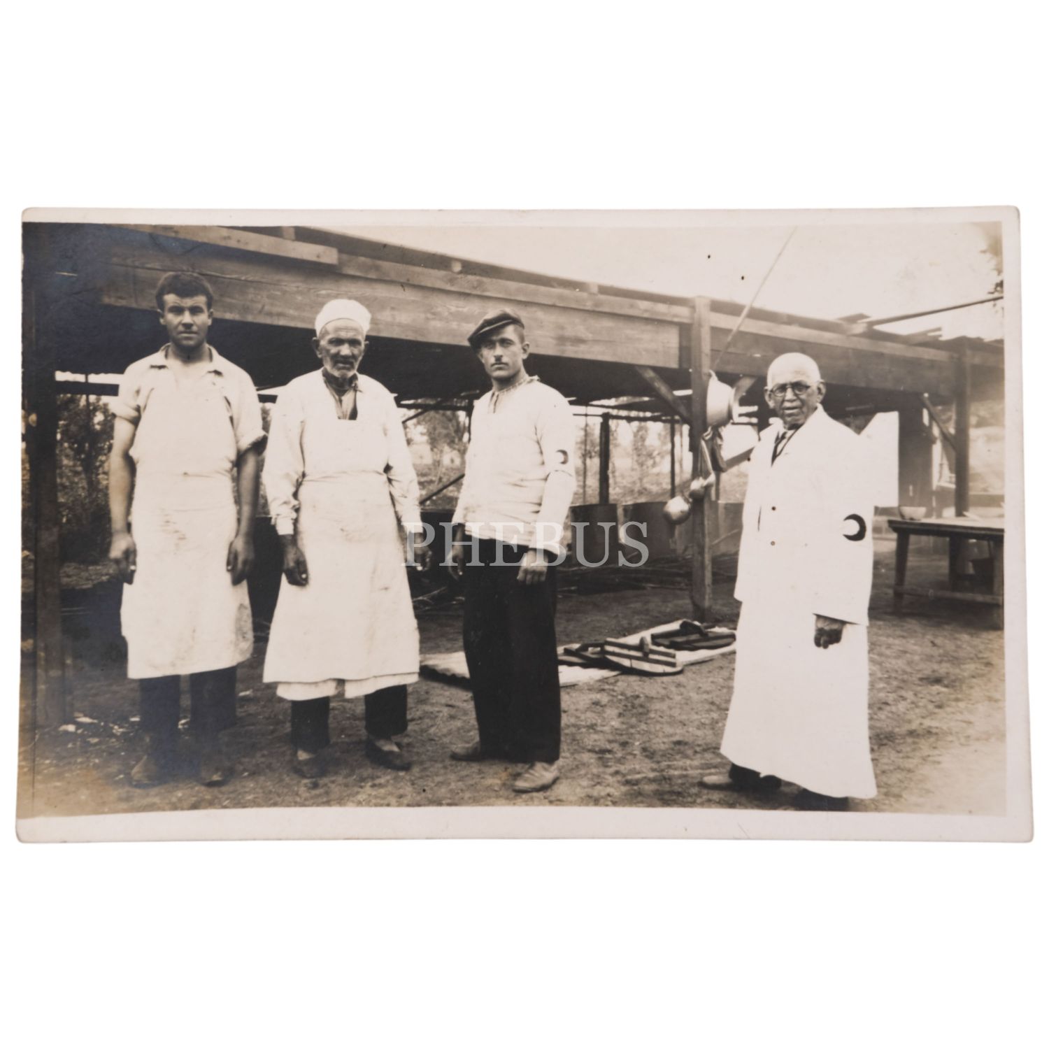I. Dünya savaşı sırasında cephedeki sıhhiyeci ve aşçıların hatıra fotoğrafı, 1918, 14x9 cm..