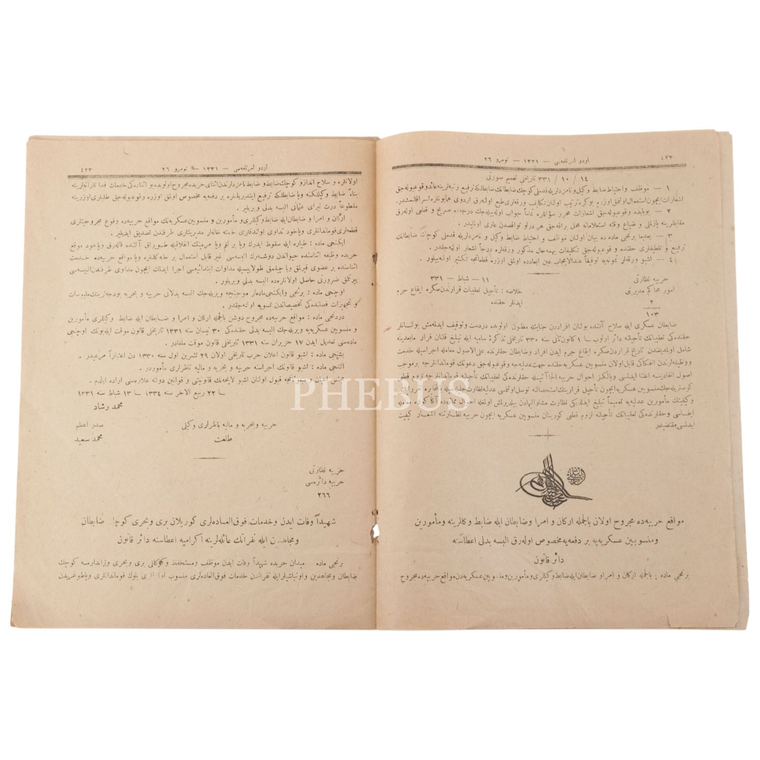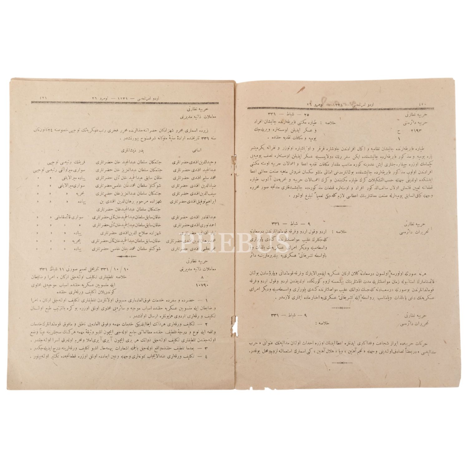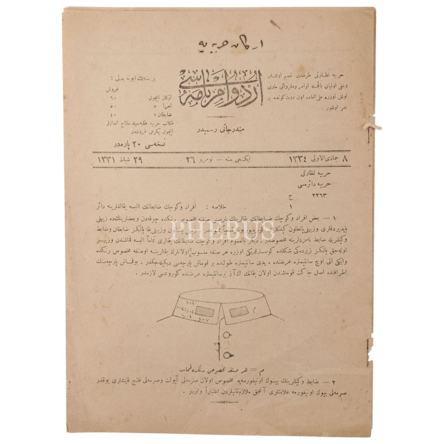 ORDU EMİRNAMESİ dergisinin 29 Şubat 1331 tarihli 26. sayısı, 20x27 cm...