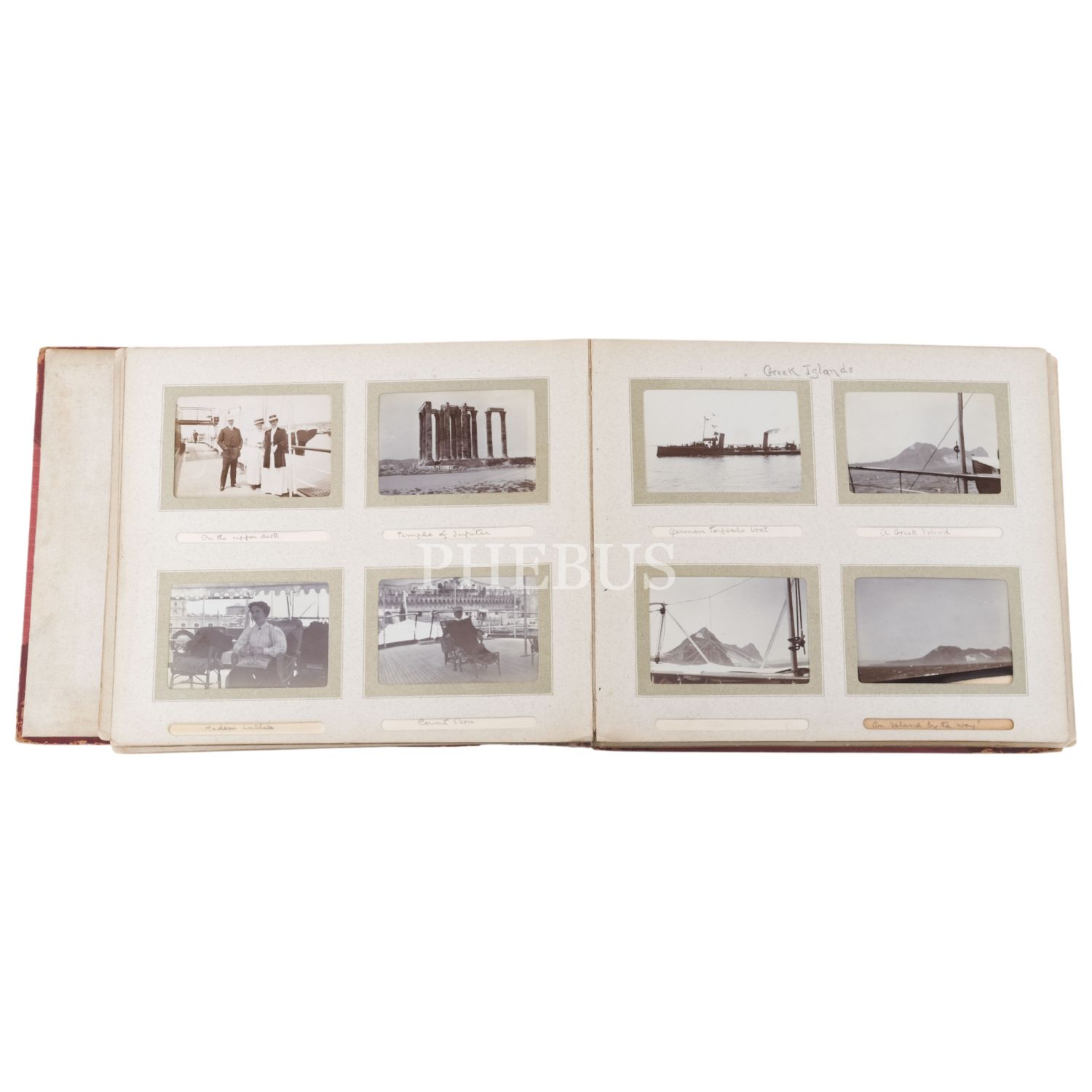 1909 yılında Paris´ten yola çıkarak kapsamlı bir Avrupa gezisi düzenleyen bir ailenin, tam 150 fotoğrafa ev sahipliği yapan seyahat albümü; albüm içinde Lizbon, Roma, Viyana, Barselona, Atina vd. önemli şehirlerden görüntülerin yanı sıra seyahat grubuna dahil şahısların fotoğrafları da yer almakta, albüm 23x20 cm, fotoğraflar (ortalama) 9x6 cm...
