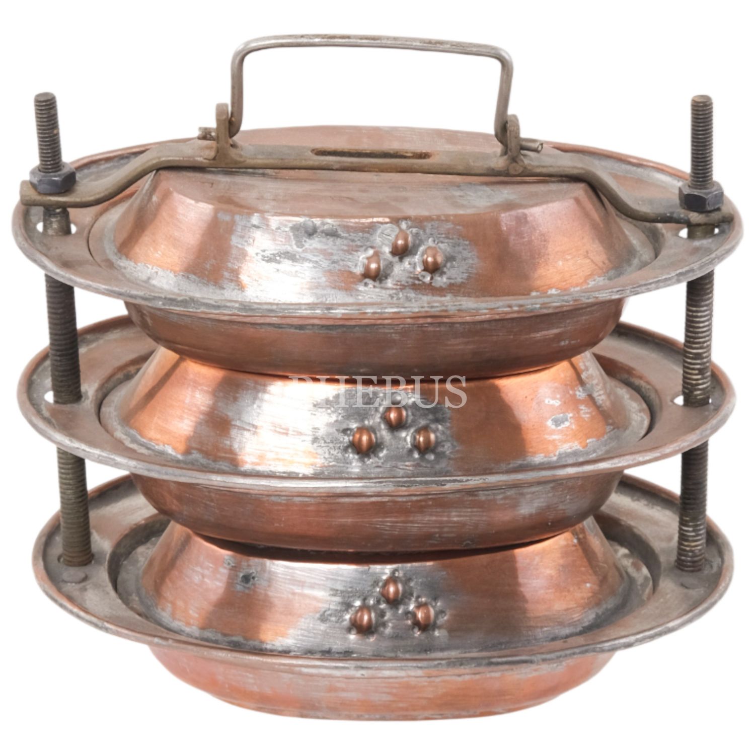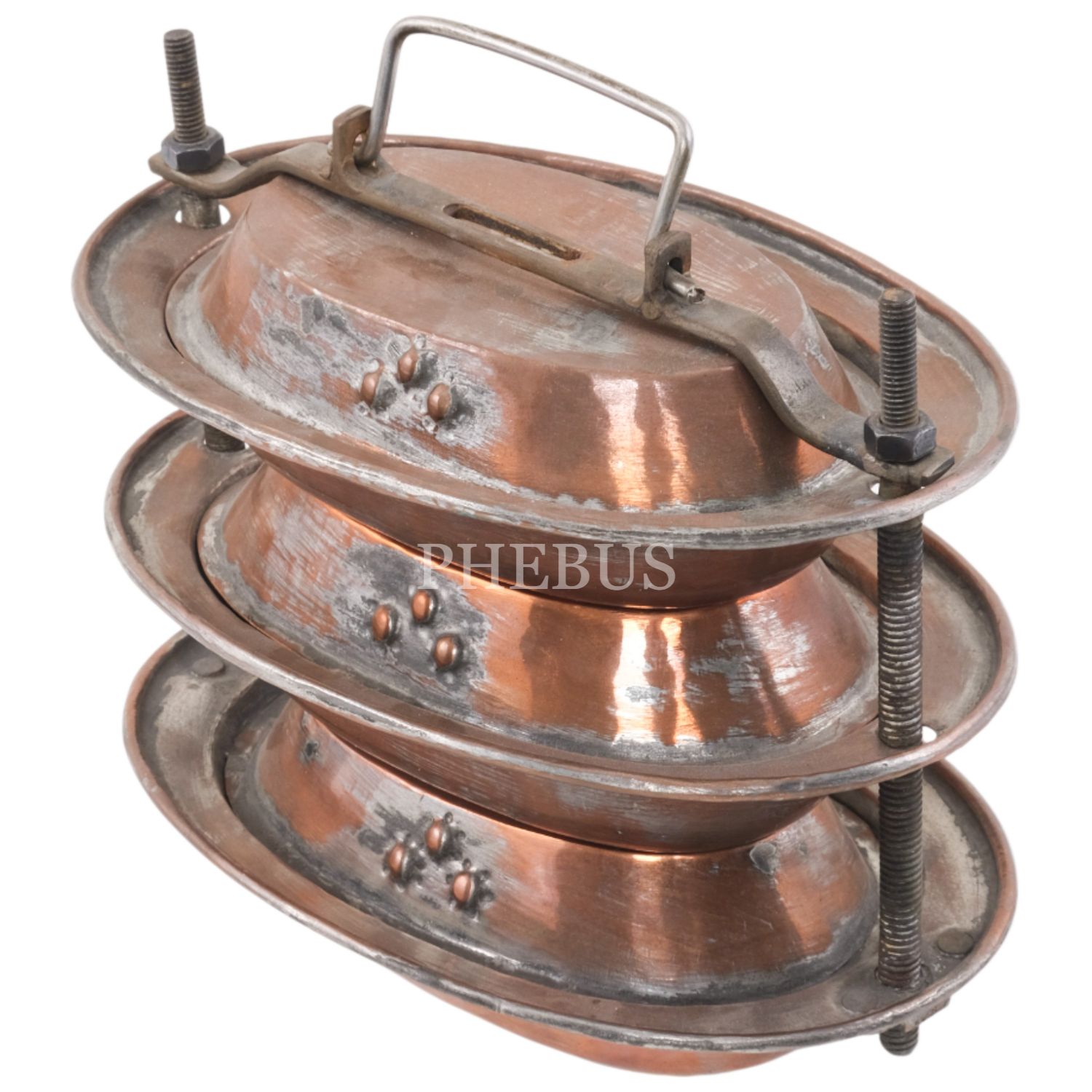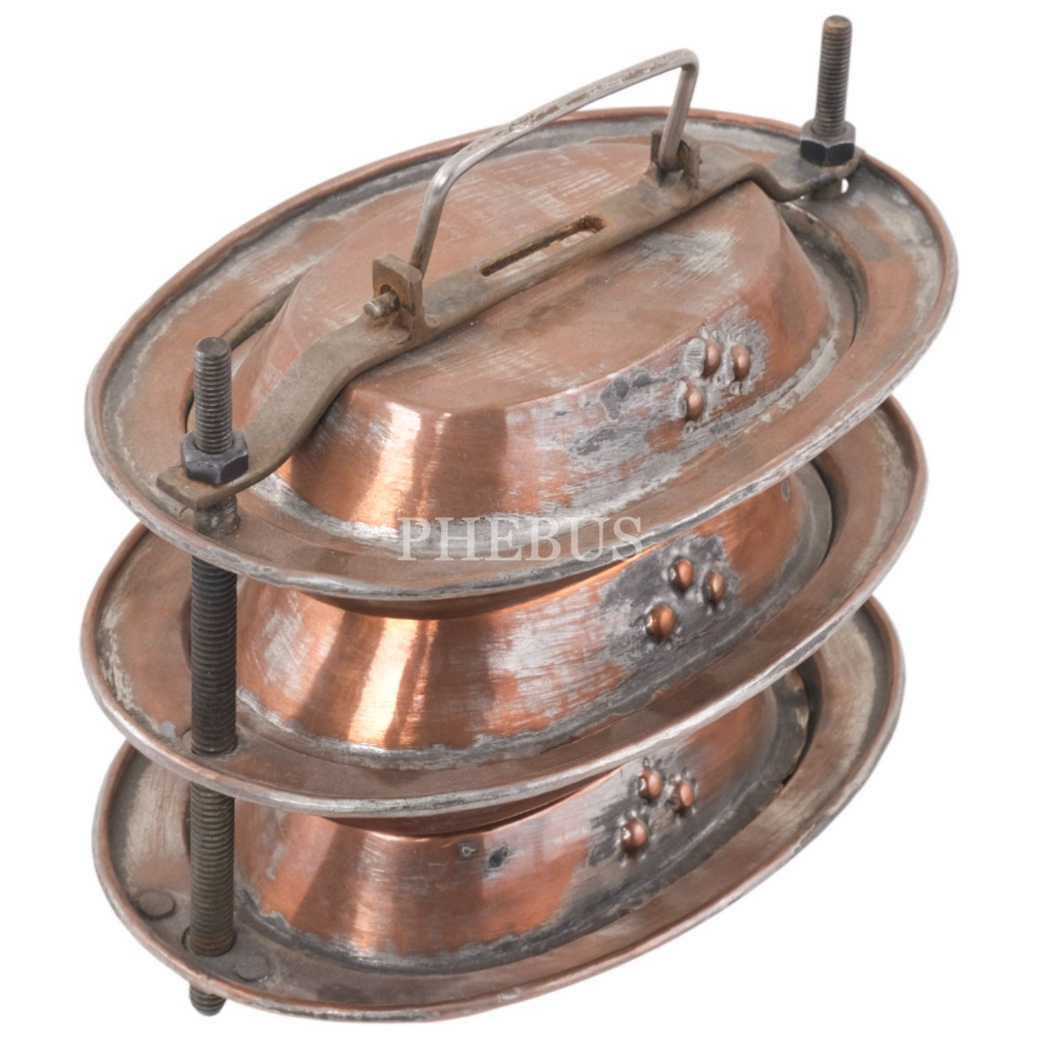 Osmanlı döneminden üç katlı sefer tası, bakır, 14x17x12 cm...