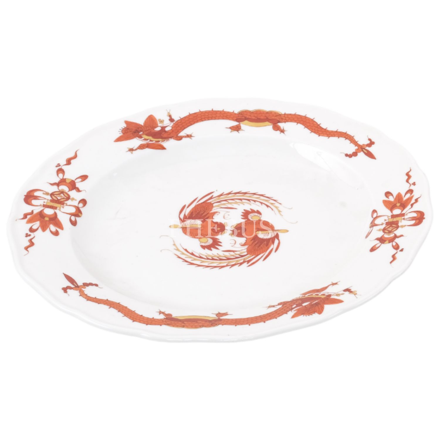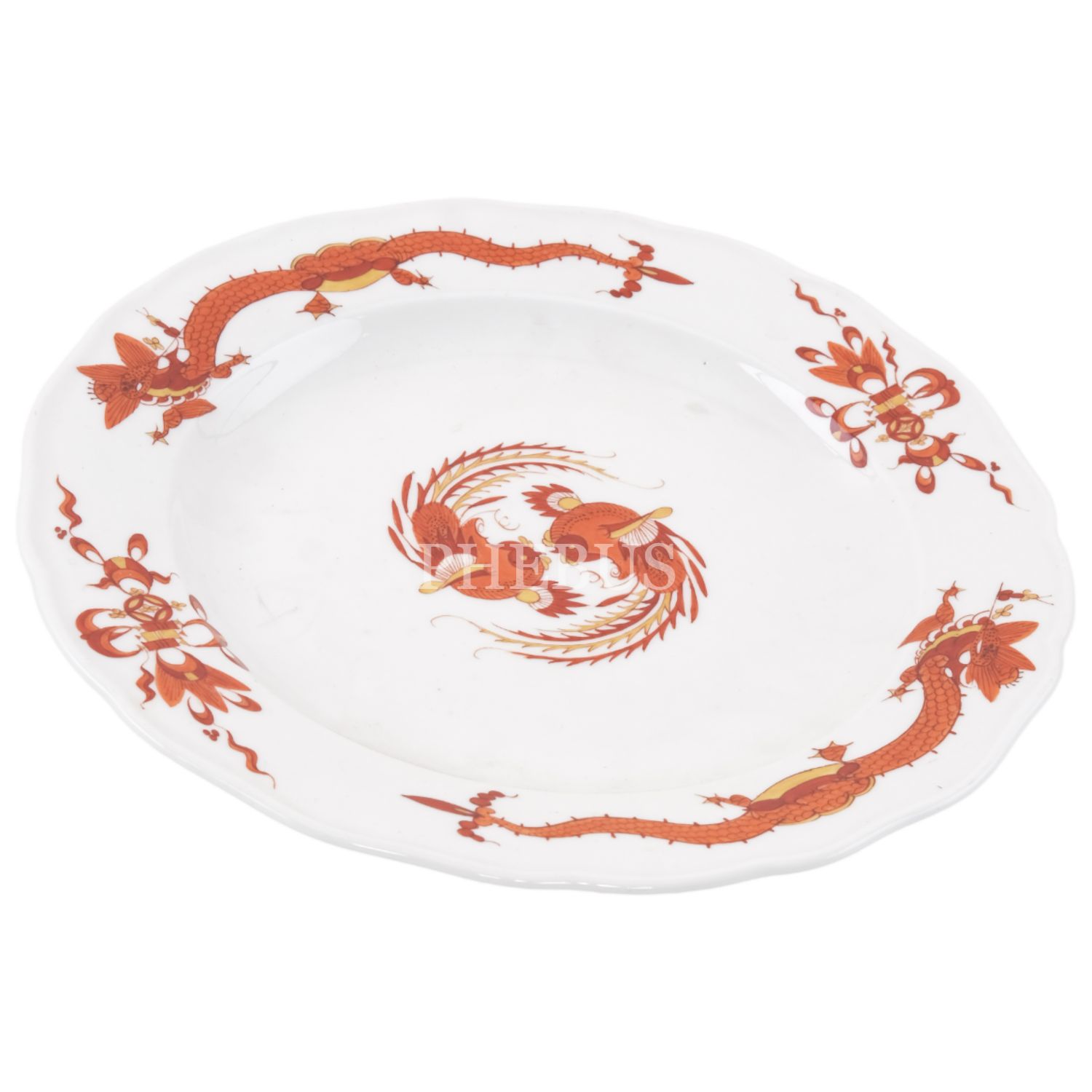 Üzerleri el boyama ejderha ve horoz görseli işlemeli, Sevr tabak seti (4 parça) küçük tabaklar çap 16 cm, büyük tap çap 25 cm...