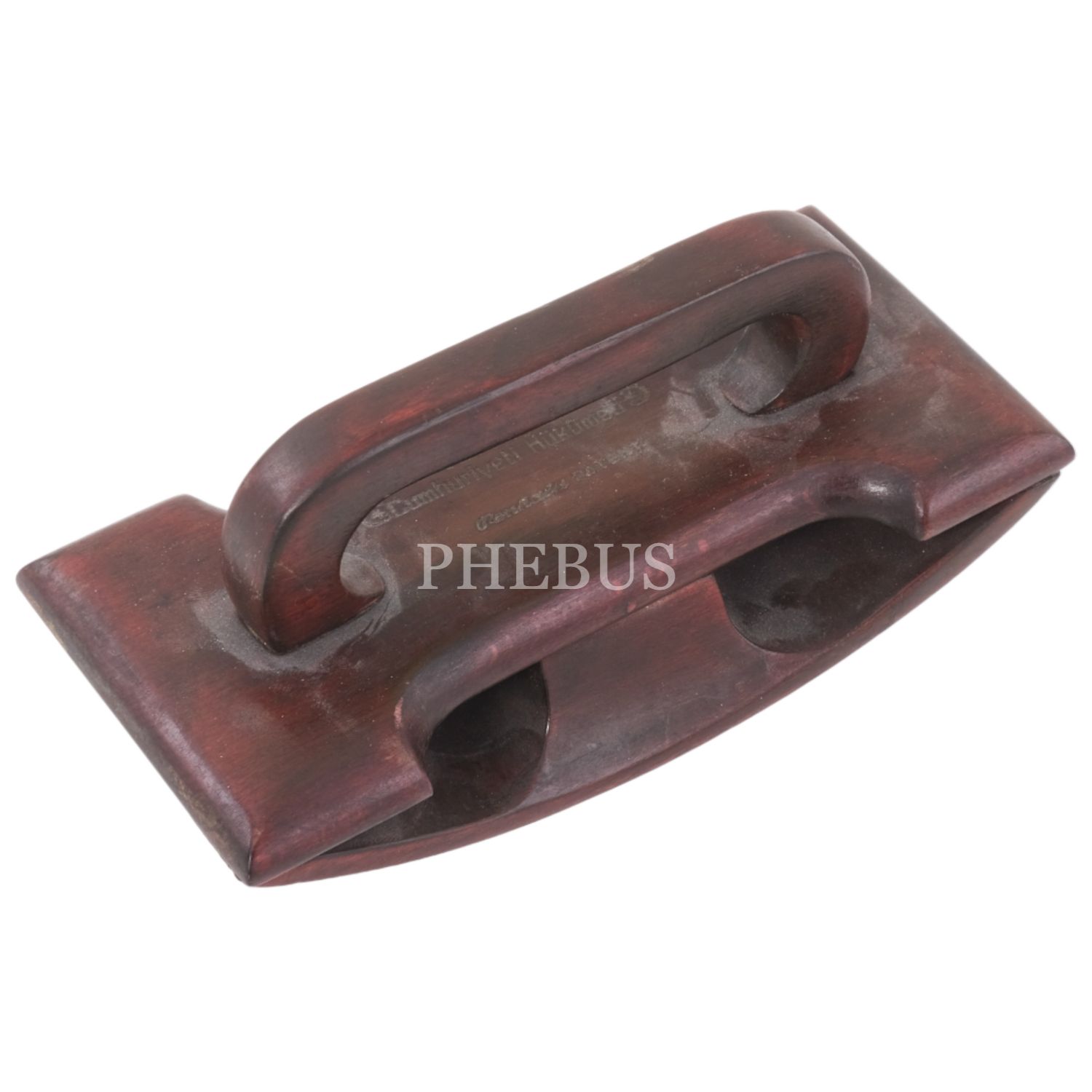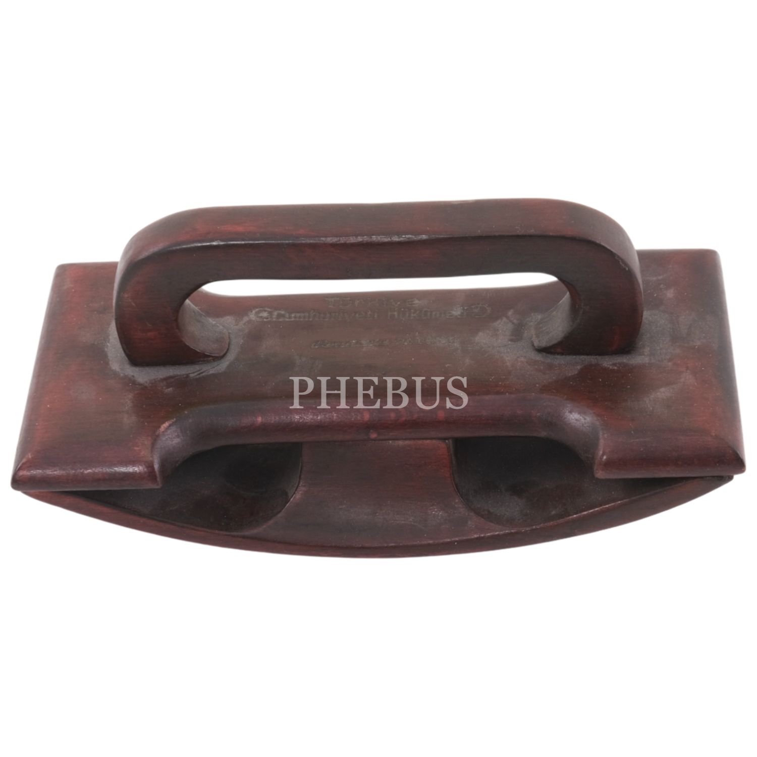 Erken Cumhuriyet döneminden, "Türkiye Cümhuriyeti Hükûmeti" yazılı ve ay-yıldız motifli ahşap mürekkep kurutucu, 8x17x7,5 cm...