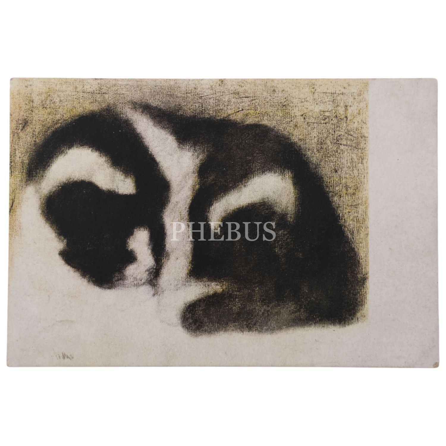 Orhan Peker´in "Uyuyan Kedi" isimli eserinin görüldüğü kartpostalın Özden ve Orhan Peker´den imzalı nüshası, 15x10 cm...