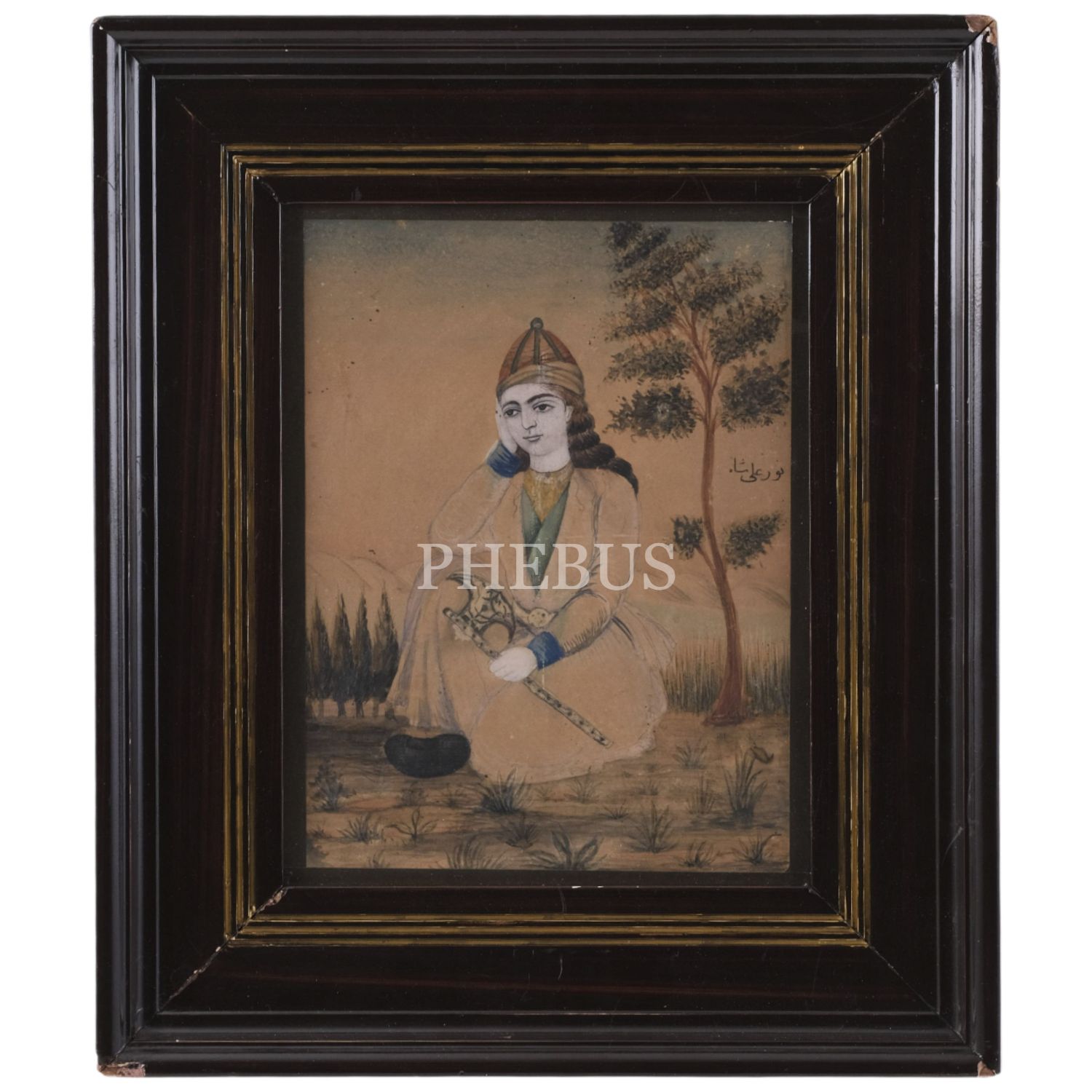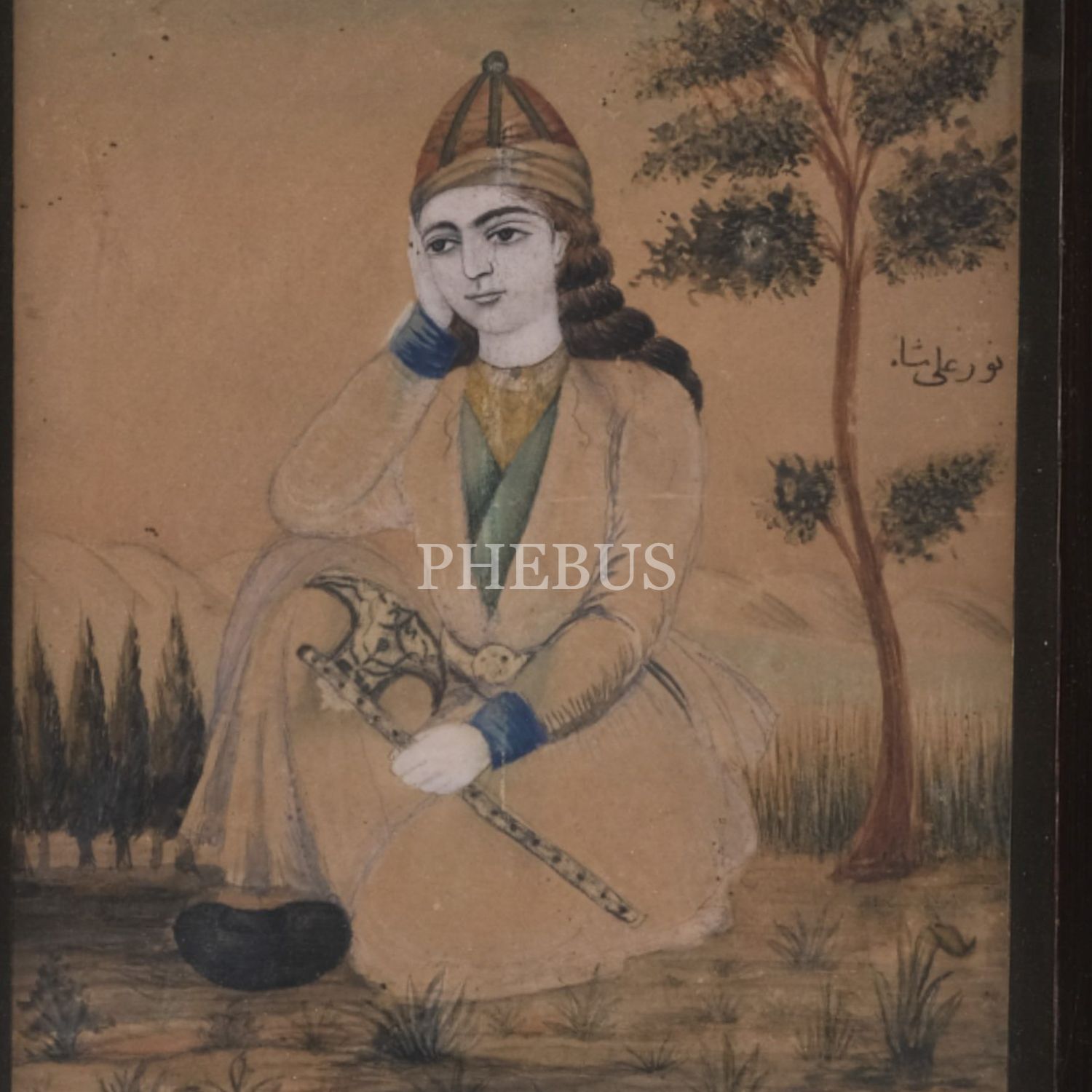 Nur Ali Şah´ın portre resmi, kâğıt üzerine karışık teknik, çerçevesiyle birlikte 38x44 cm...