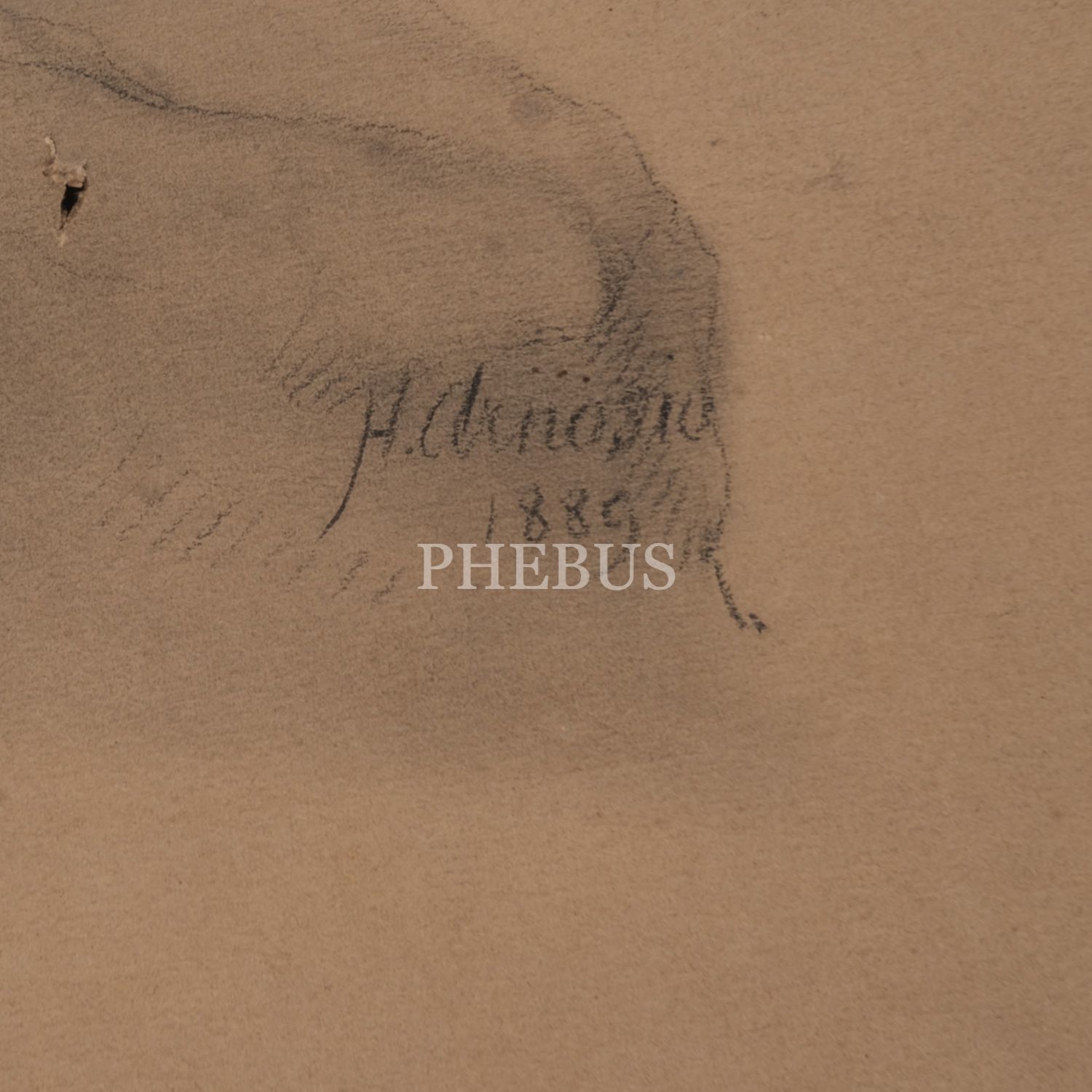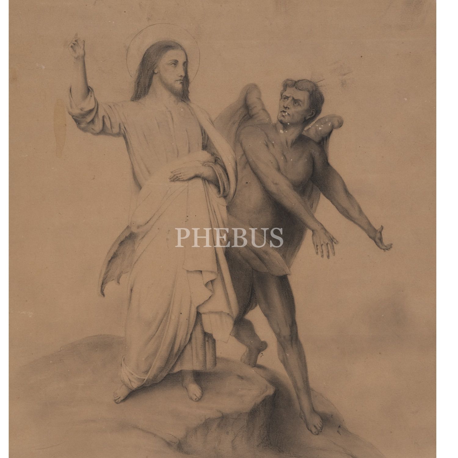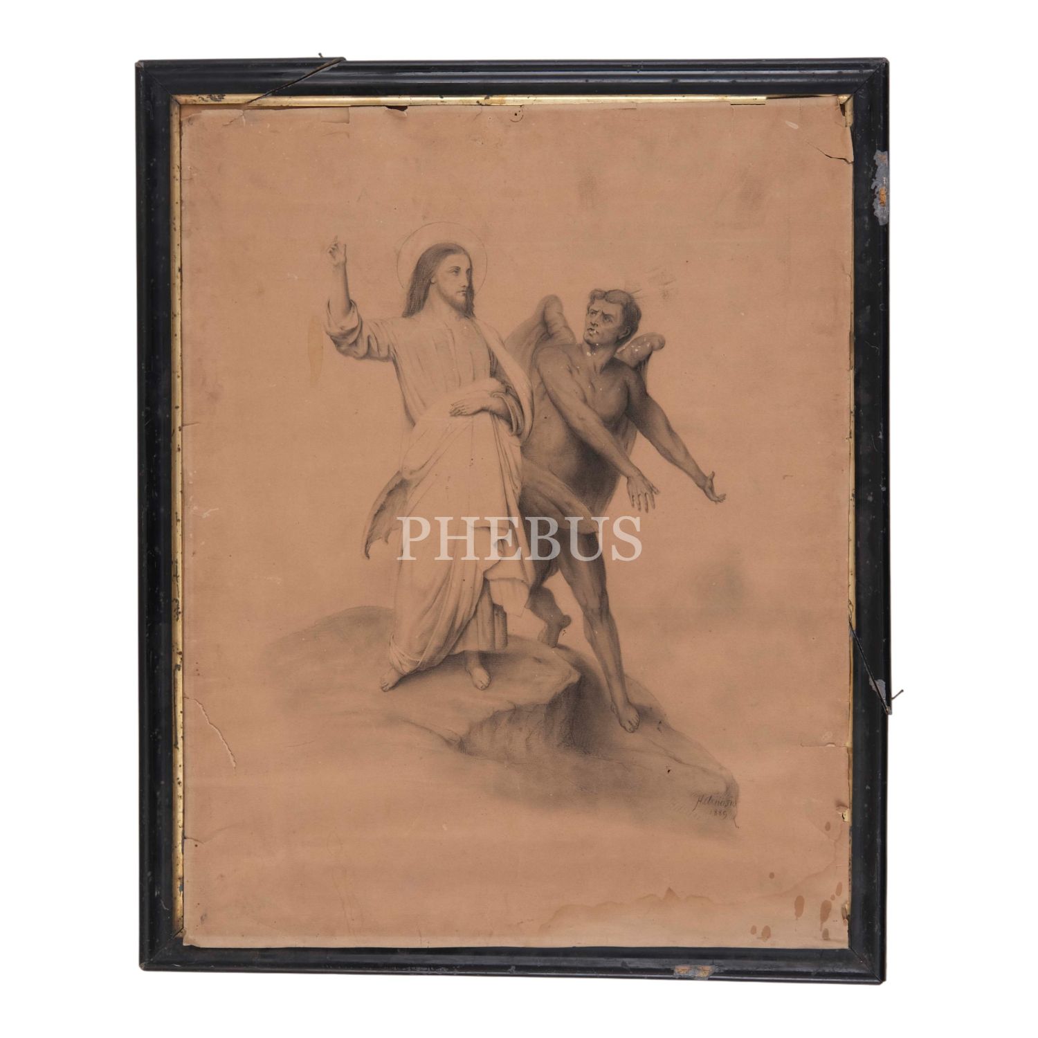 Hz. İsa ve melek konulu resim, sanatçı imzalı ve 1889 tarihli, kâğıt üzerine karakalem, resim, 47x60 cm, çerçeve 53x65 cm...