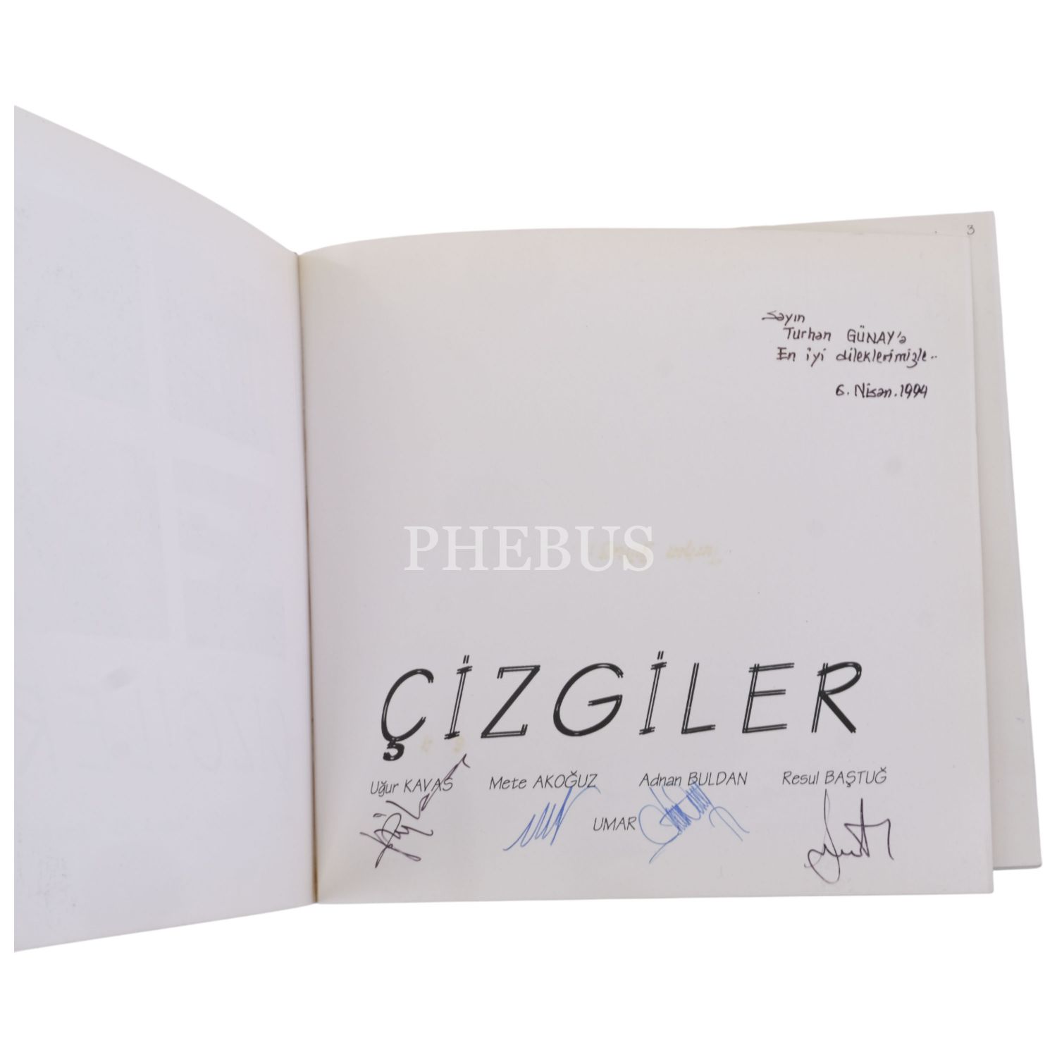 "Sayın Turhan Günay´a en iyi dileklerimizle." ithafıyla, 6 Nisan 1994 tarihinde imzalanmıştır. 500 adet sınırlı sayıda basılan kitabın 70 numaralı nüshası.