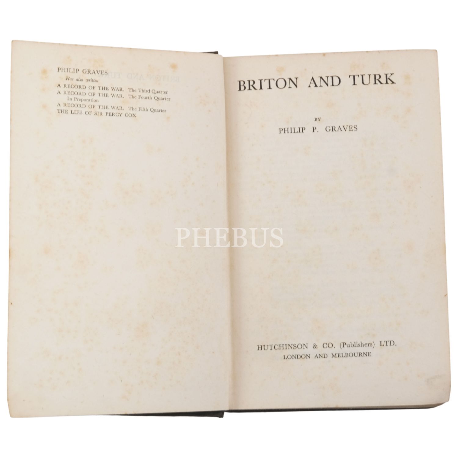 BRITON AND TURK, Philip P. Graves, 1941, Hutchinson & Co. (Publishers) LTD., London and Melbourne, 260 sayfa, 15x22 cm...