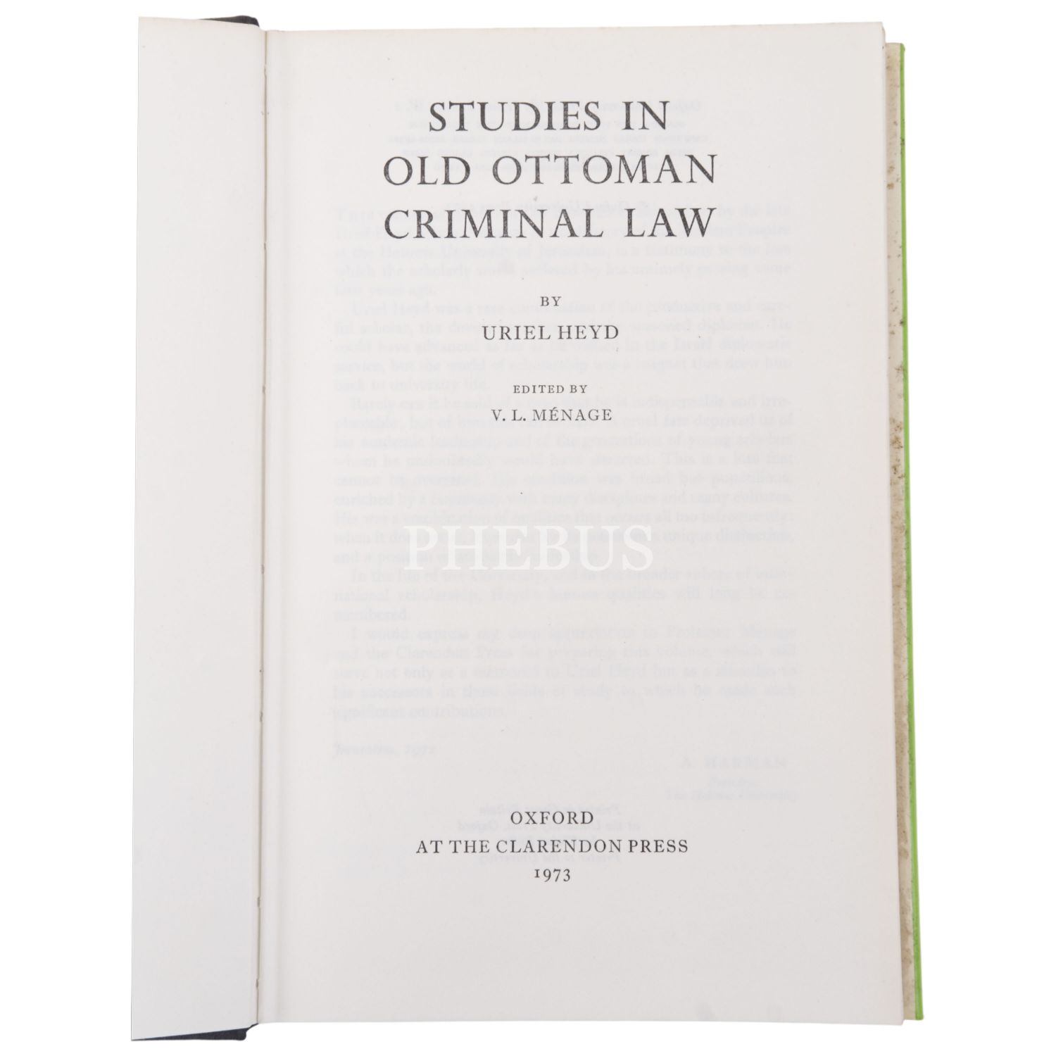 STUDIES IN OLD OTTOMAN CRIMINAL LAW, Uriel Heyd, (edited by V. L. Menage), 1973, Clarendon Press, Oxford, 340 sayfa, 14,5x22,5 cm...